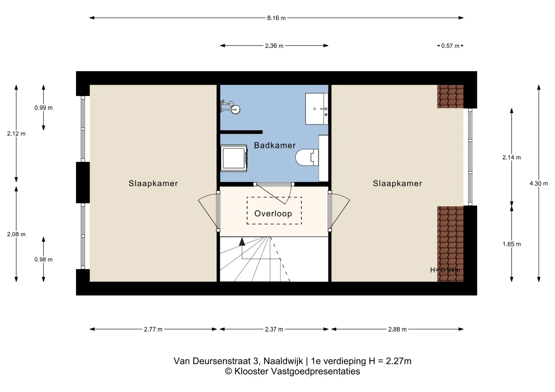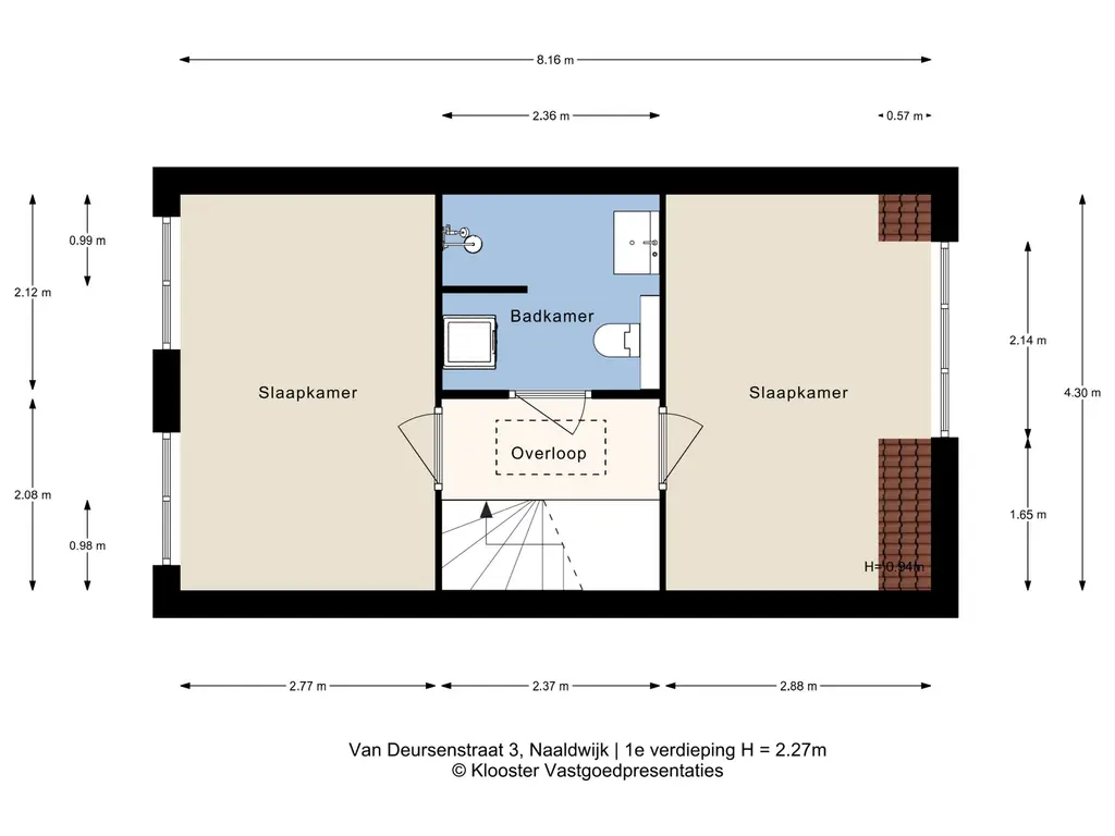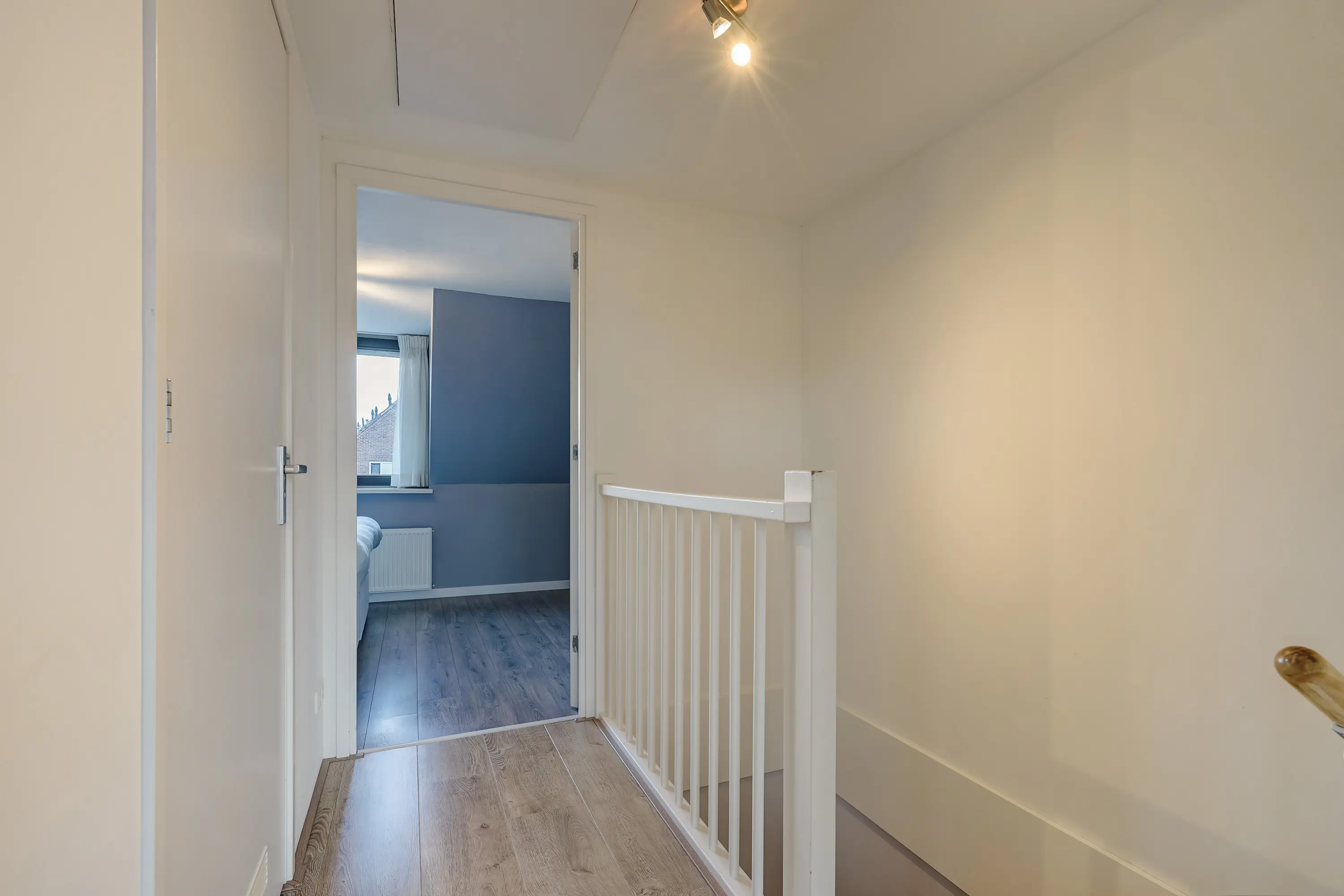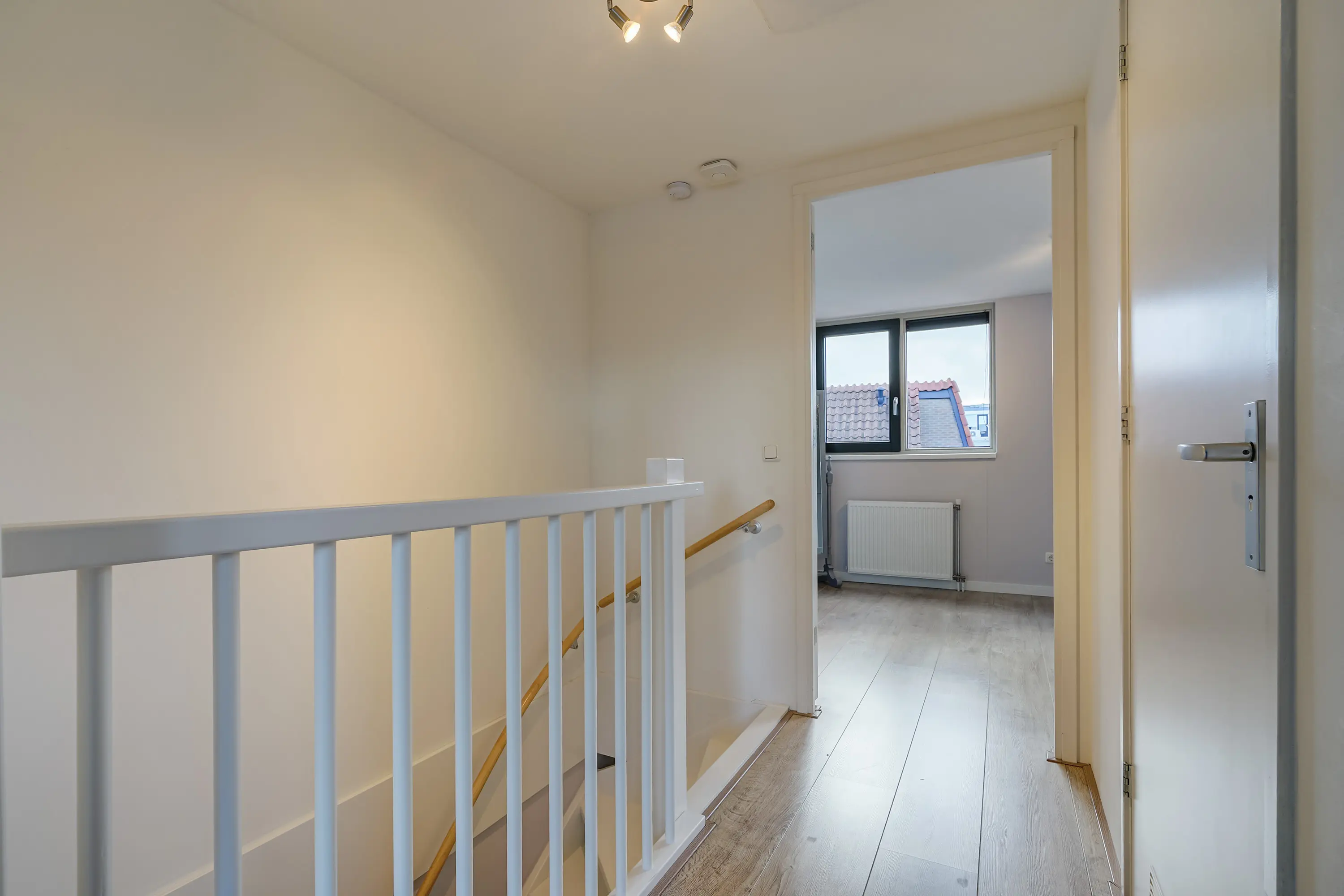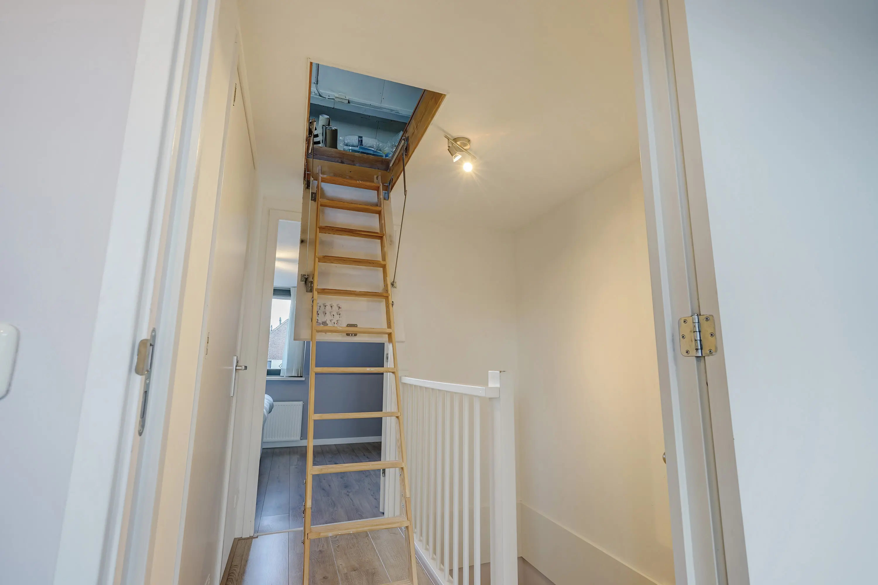Vanaf de overloop zijn twee slaapkamers en de badkamer toegankelijk. Tevens bevindt zich hier een vlizotrap naar de vliering, die ideaal is voor het opbergen van reiskoffers, seizoensspullen en andere items die niet dagelijks gebruikt worden.