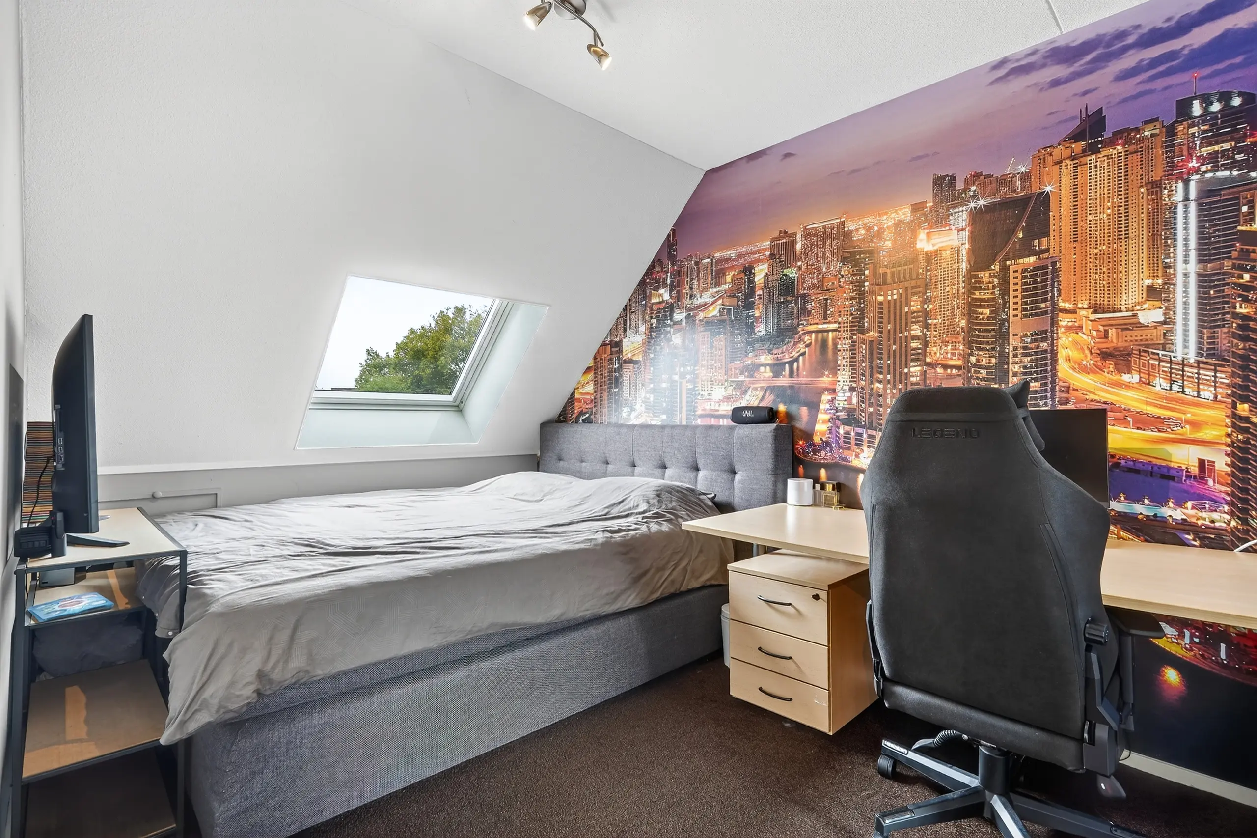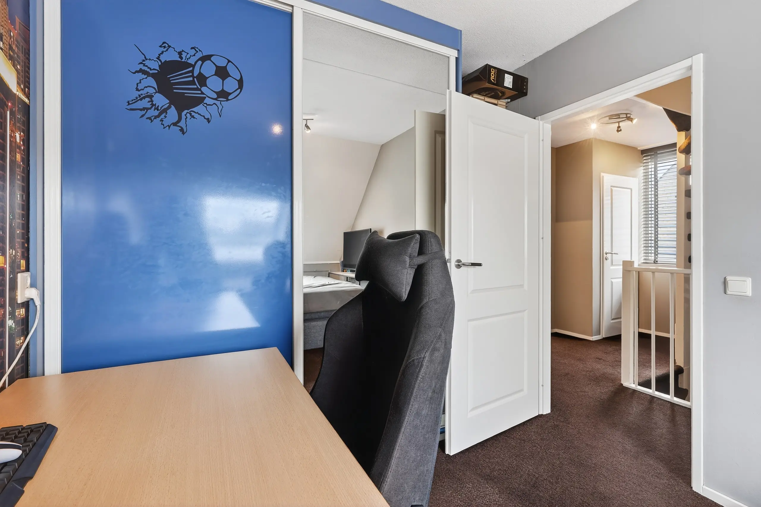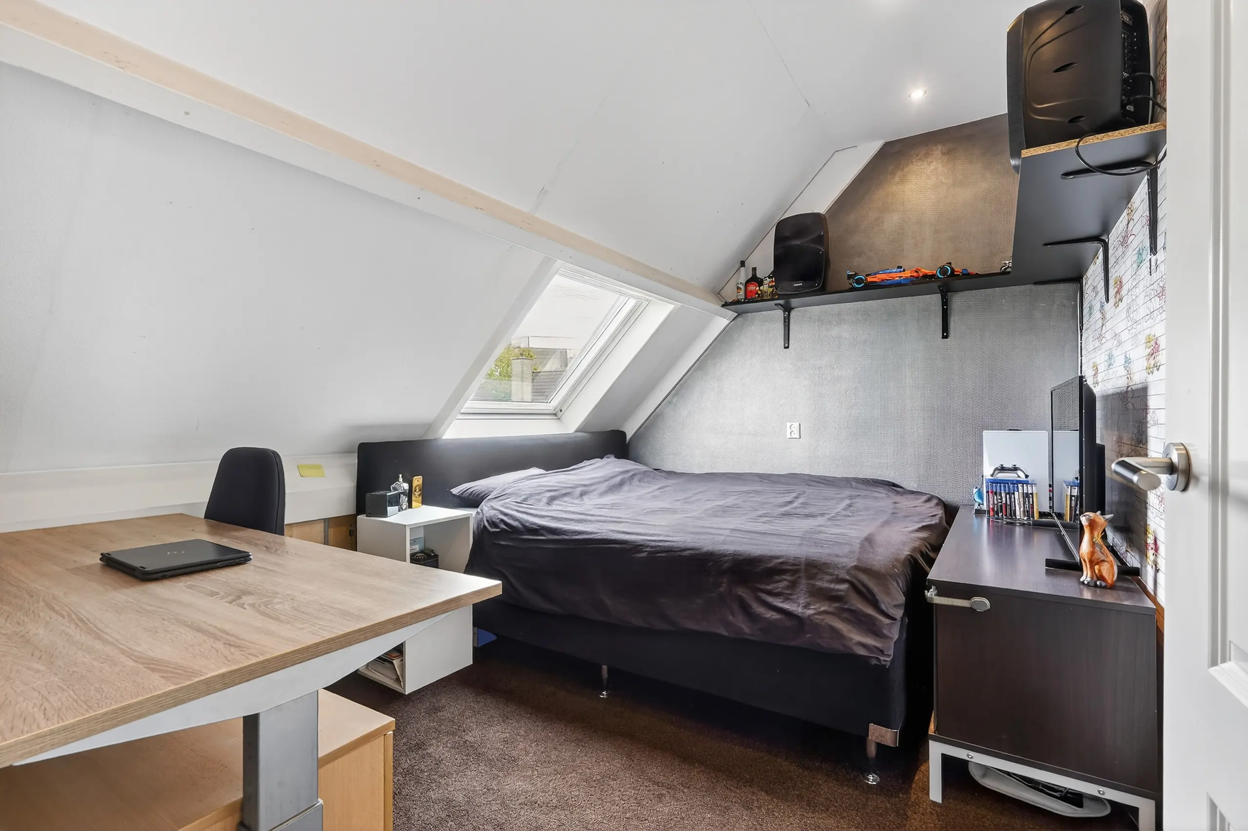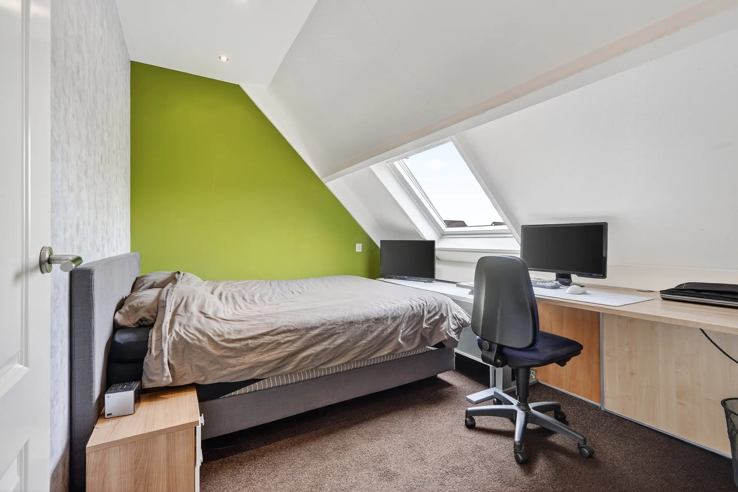 Aan de achterzijde van het huis bevinden zich nog twee slaapkamers. De kamer aan de linkerzijde wordt momenteel niet gebruikt als slaapkamer, maar is zeker ruim genoeg om daarvoor in te richten. De rechter slaapkamer beschikt over een grote kastenwand bij binnenkomst en een charmant schuin aflopend dak met een dakraam, wat zorgt voor een knusse, maar toch lichte ruimte.