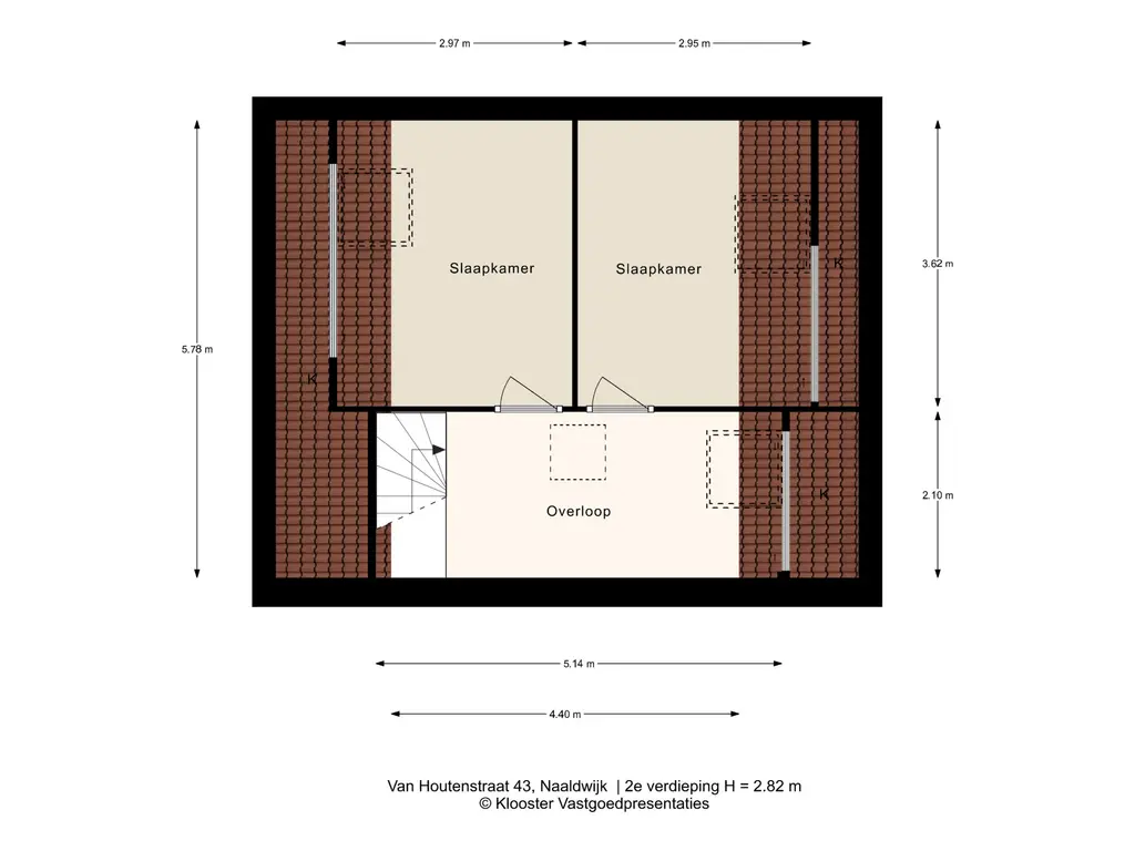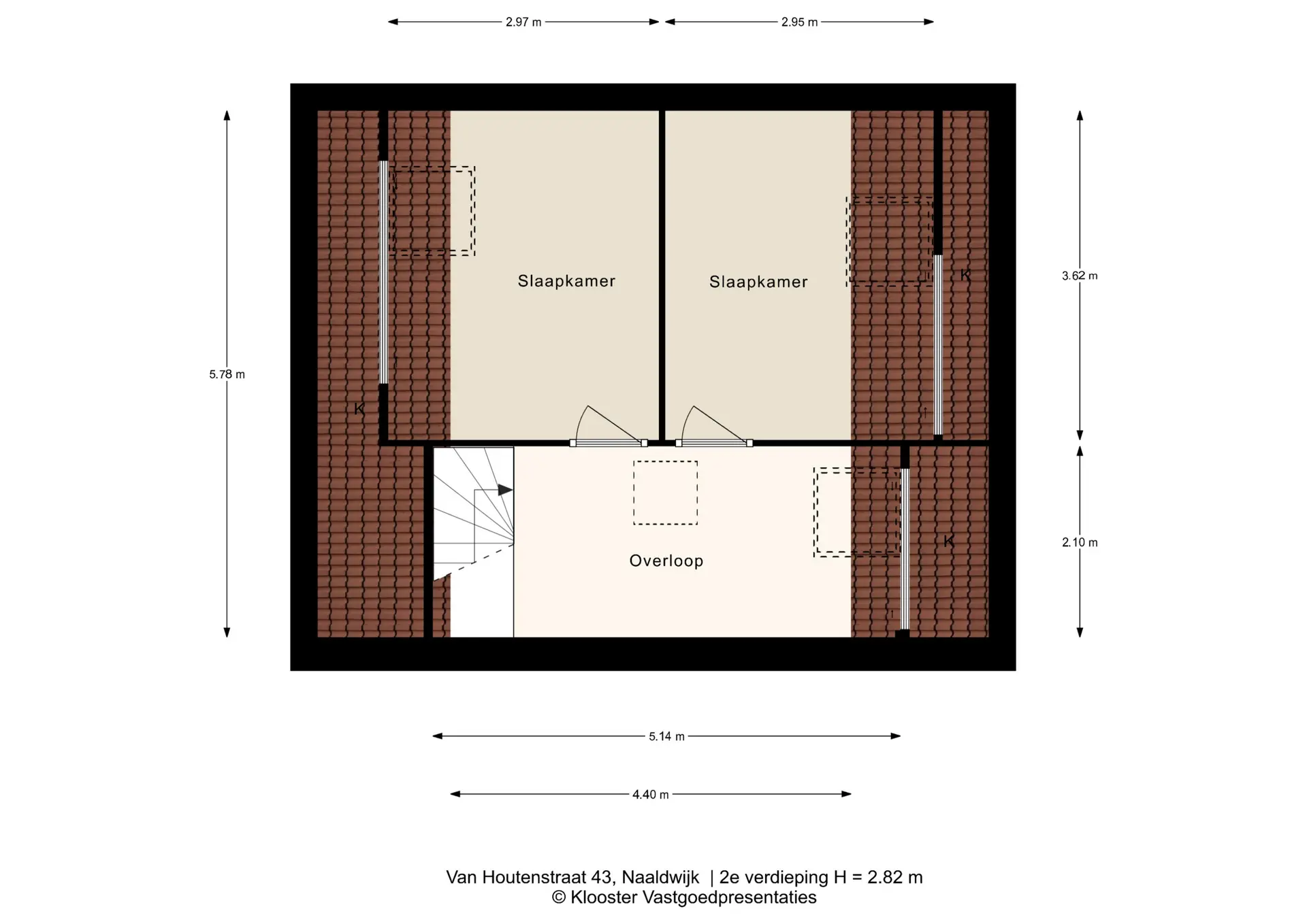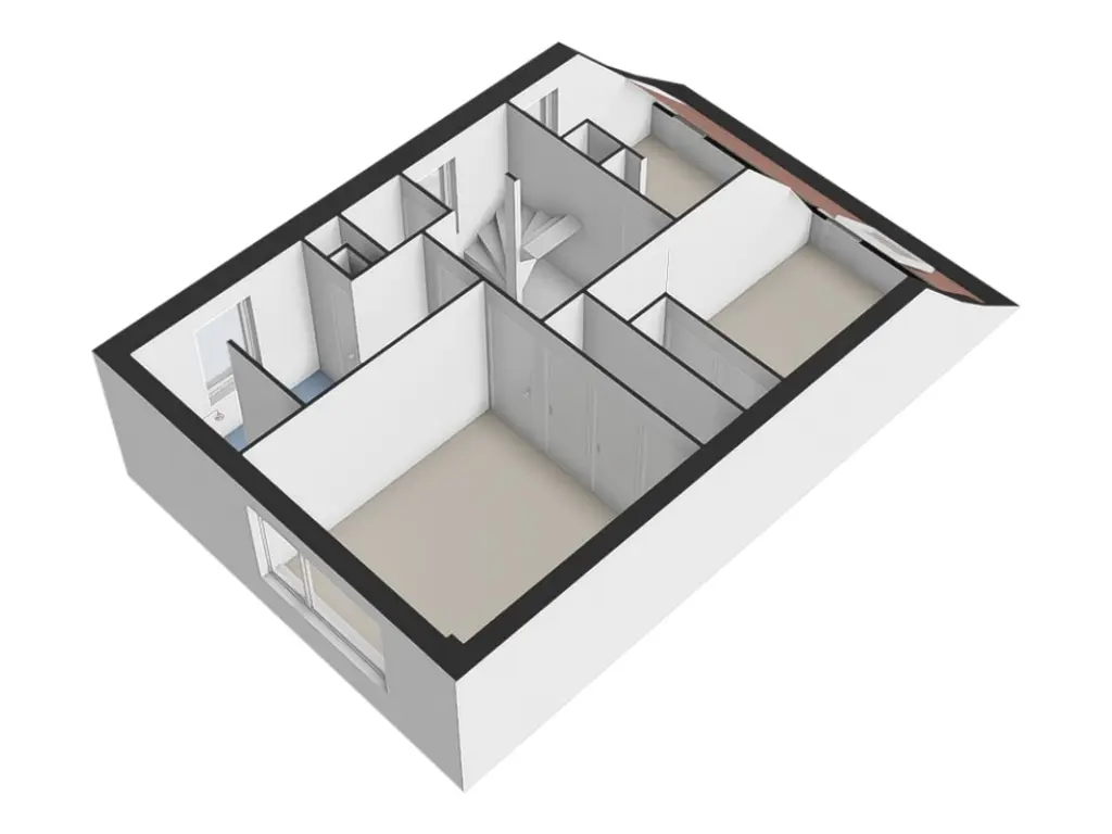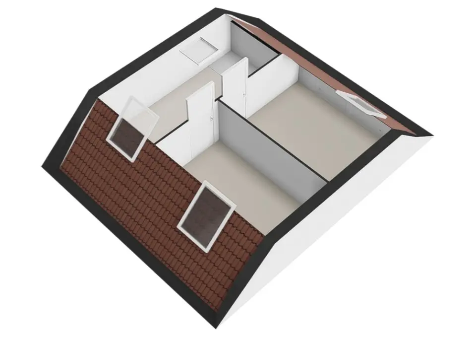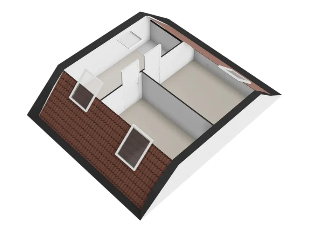 Aan de achterzijde van het huis bevinden zich nog twee slaapkamers. De kamer aan de linkerzijde wordt momenteel niet gebruikt als slaapkamer, maar is zeker ruim genoeg om daarvoor in te richten. De rechter slaapkamer beschikt over een grote kastenwand bij binnenkomst en een charmant schuin aflopend dak met een dakraam, wat zorgt voor een knusse, maar toch lichte ruimte.