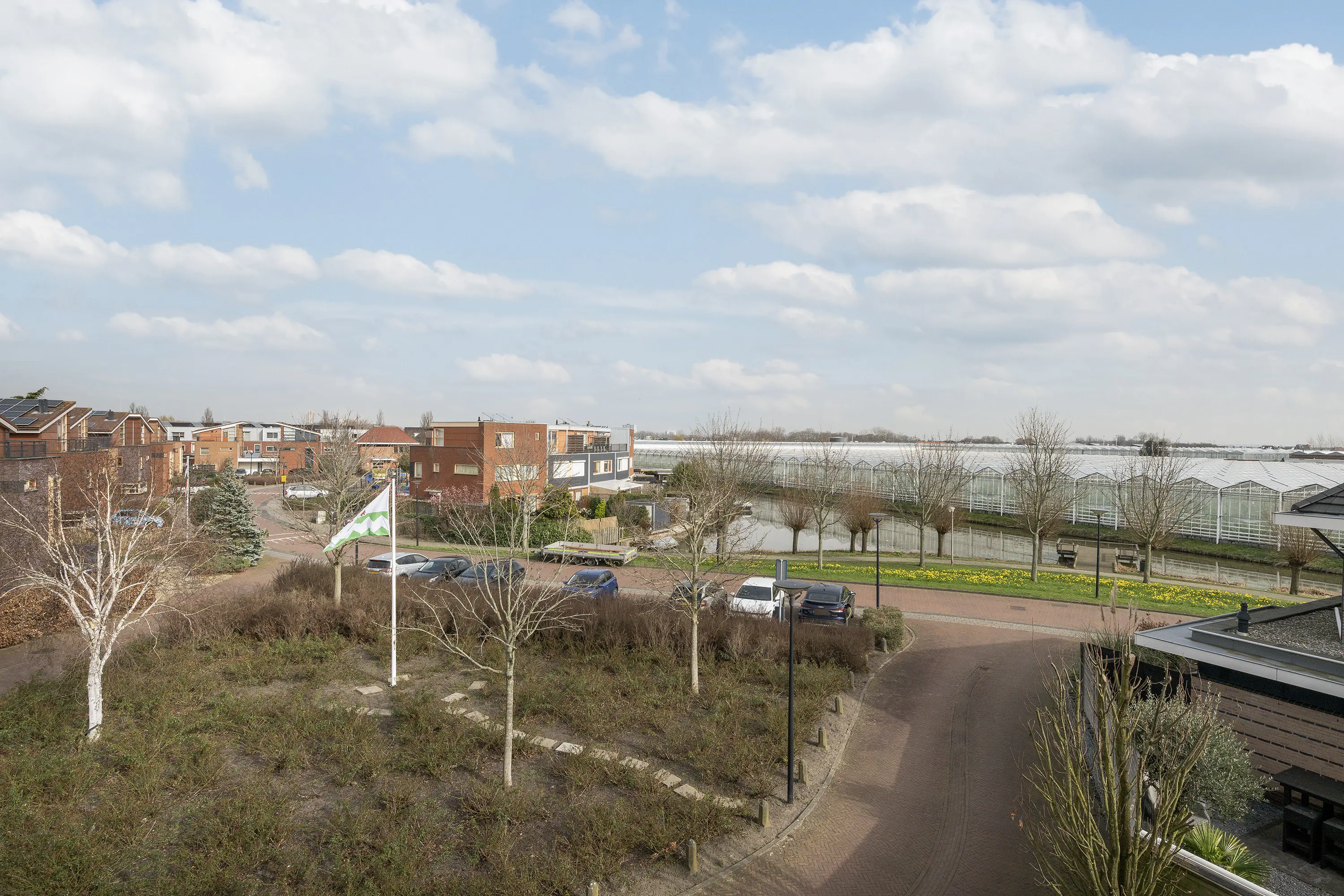 aan rustige weg, in woonwijk, vrij uitzicht