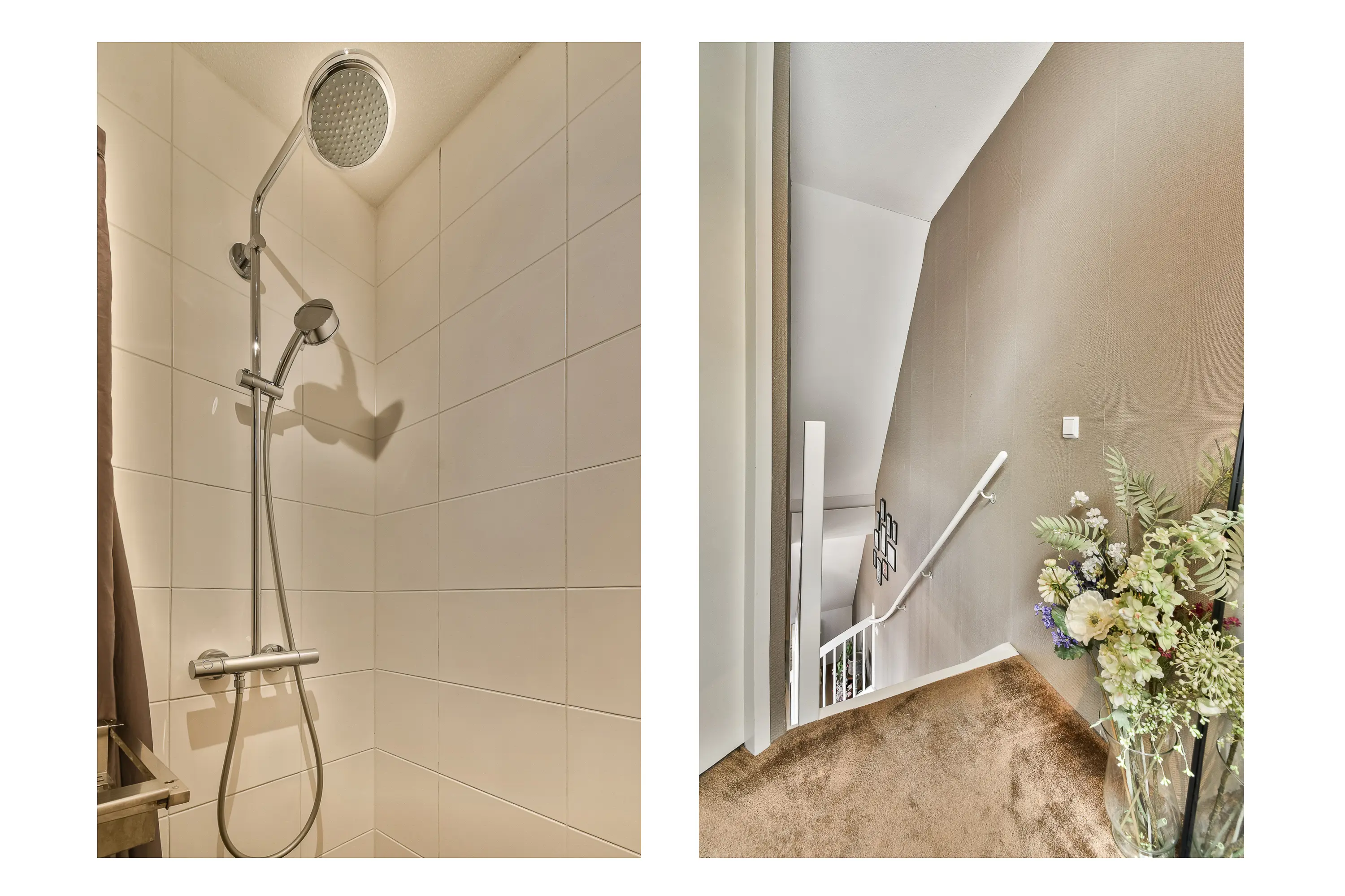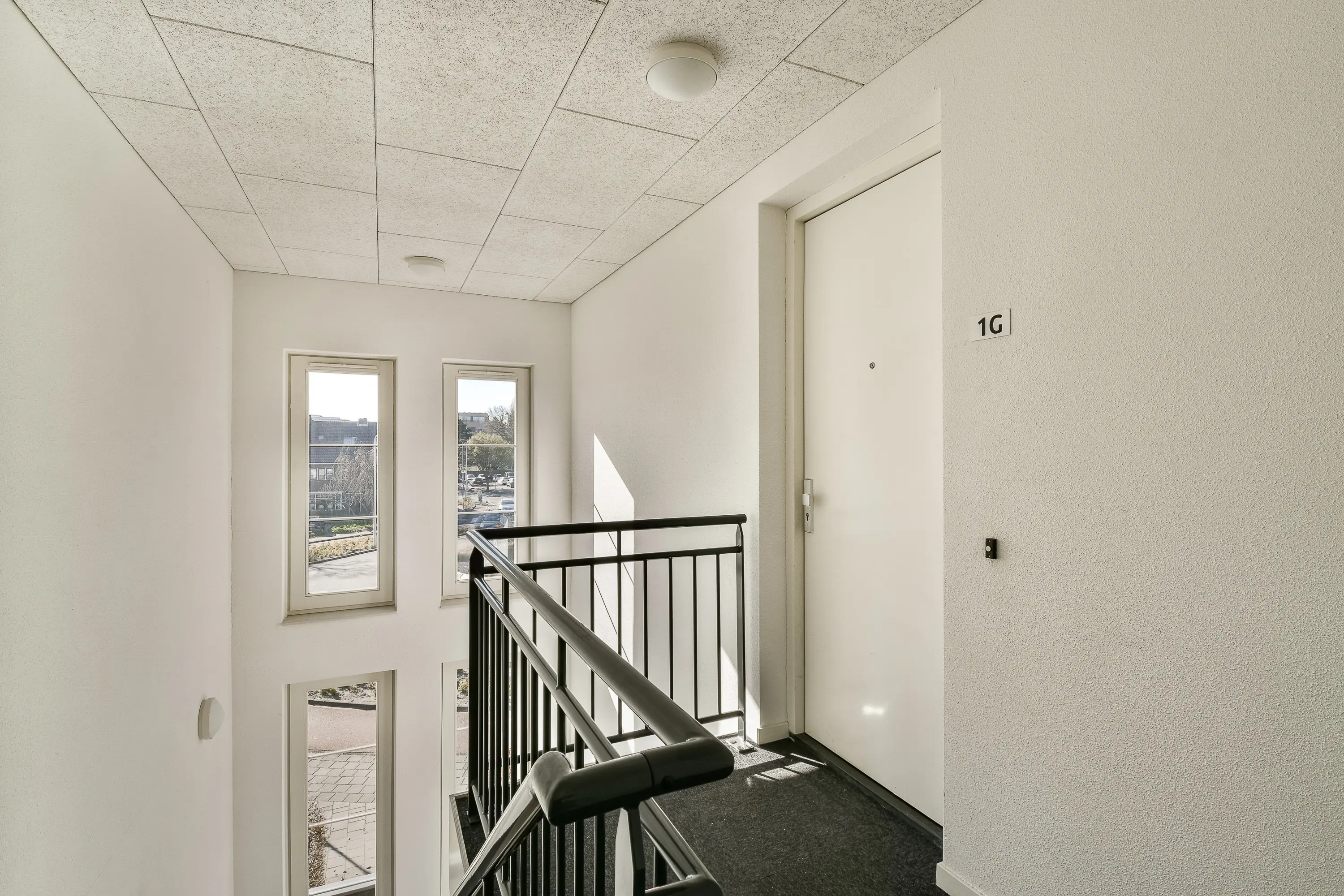 Representatieve, afgesloten entree met intercom en brievenbustableau. Via het trappenhuis bereik je het appartement op de tweede verdieping.