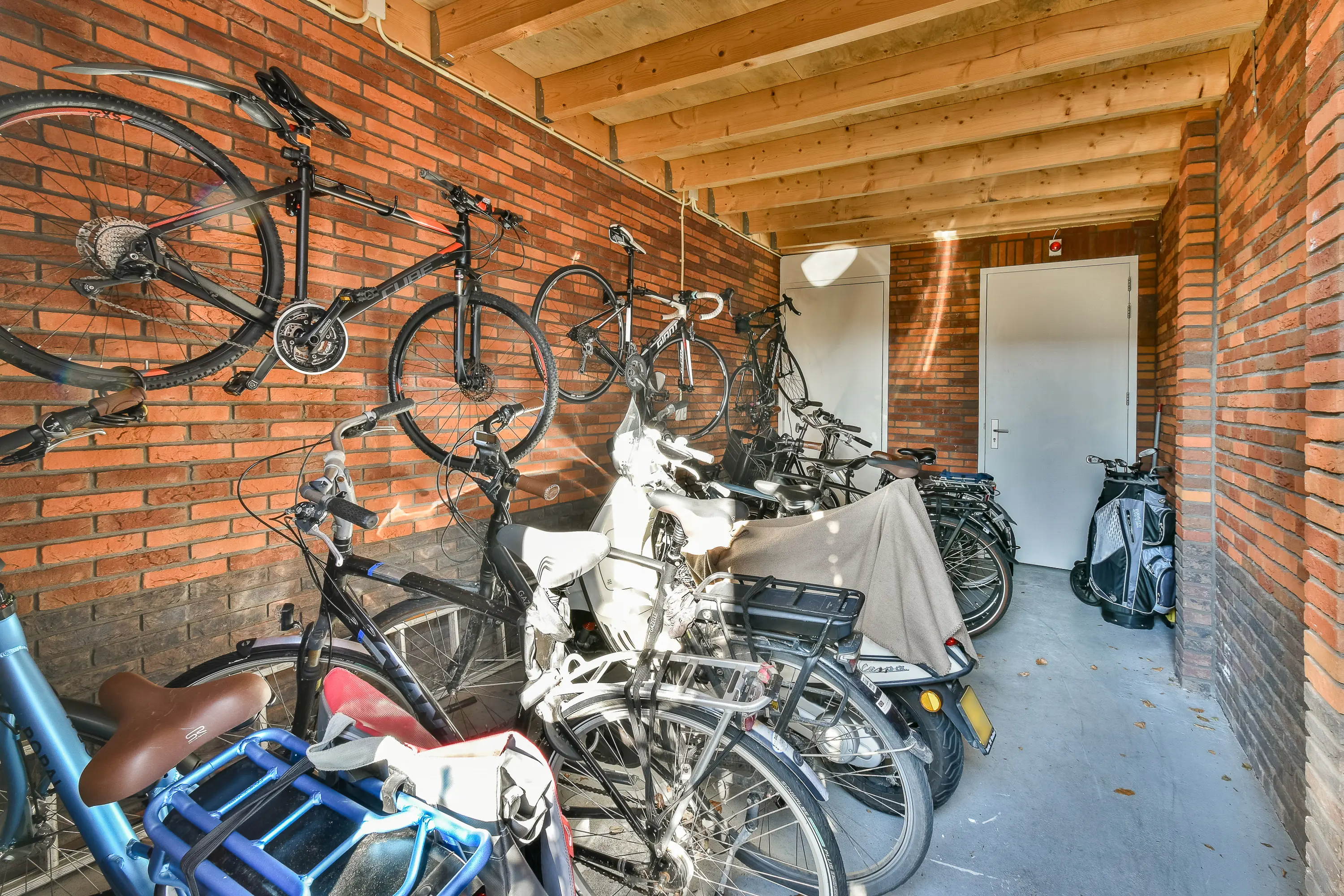 De eigen parkeerplaats bevindt zich op het gezamenlijke parkeerterrein achter het complex. De gezamenlijke fietsenberging ligt direct naast het gebouw.