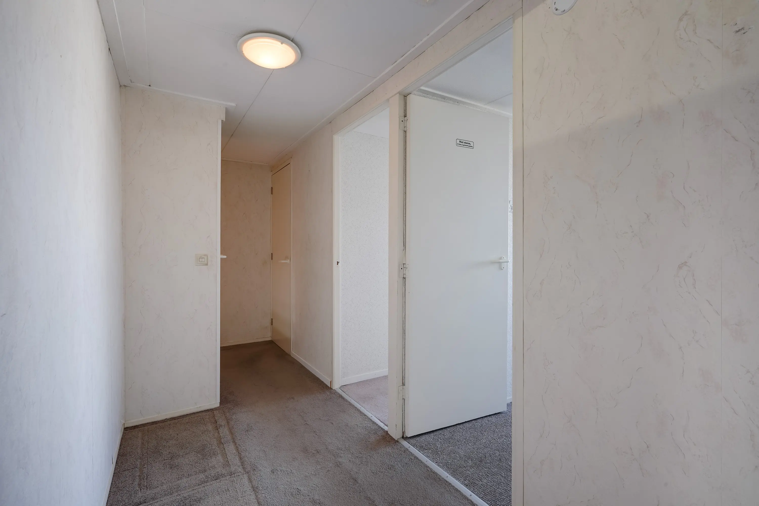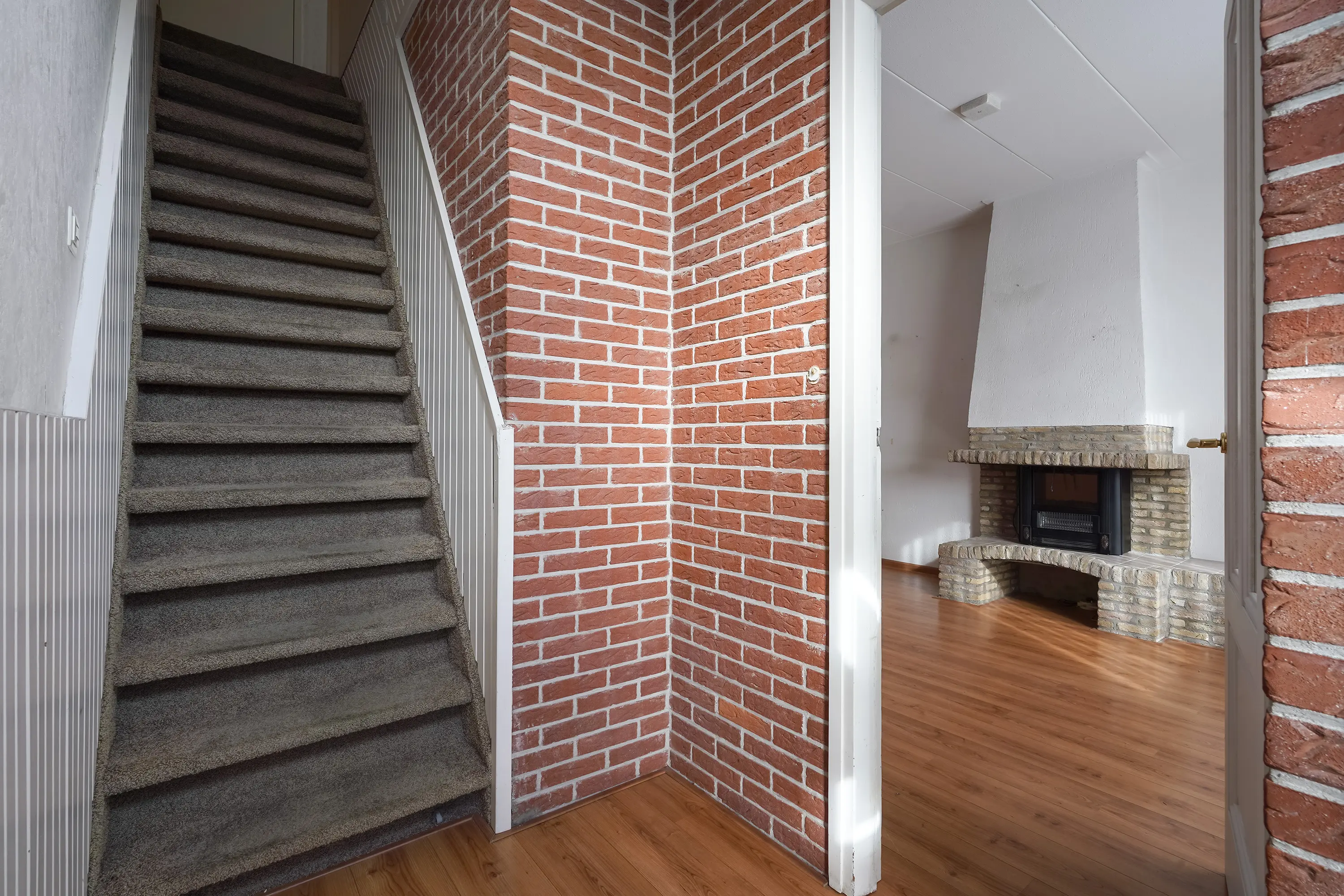 Entree aan de voorzijde met meterkast, vaste trapopgang en toegangsdeur naar de woonkamer.