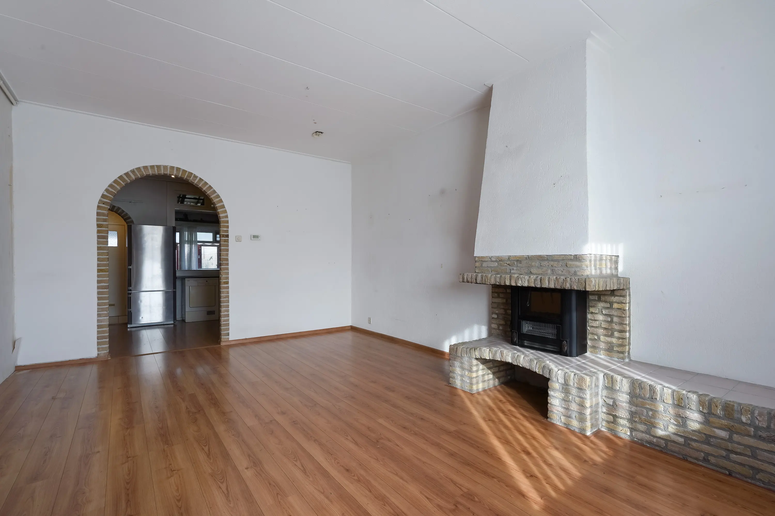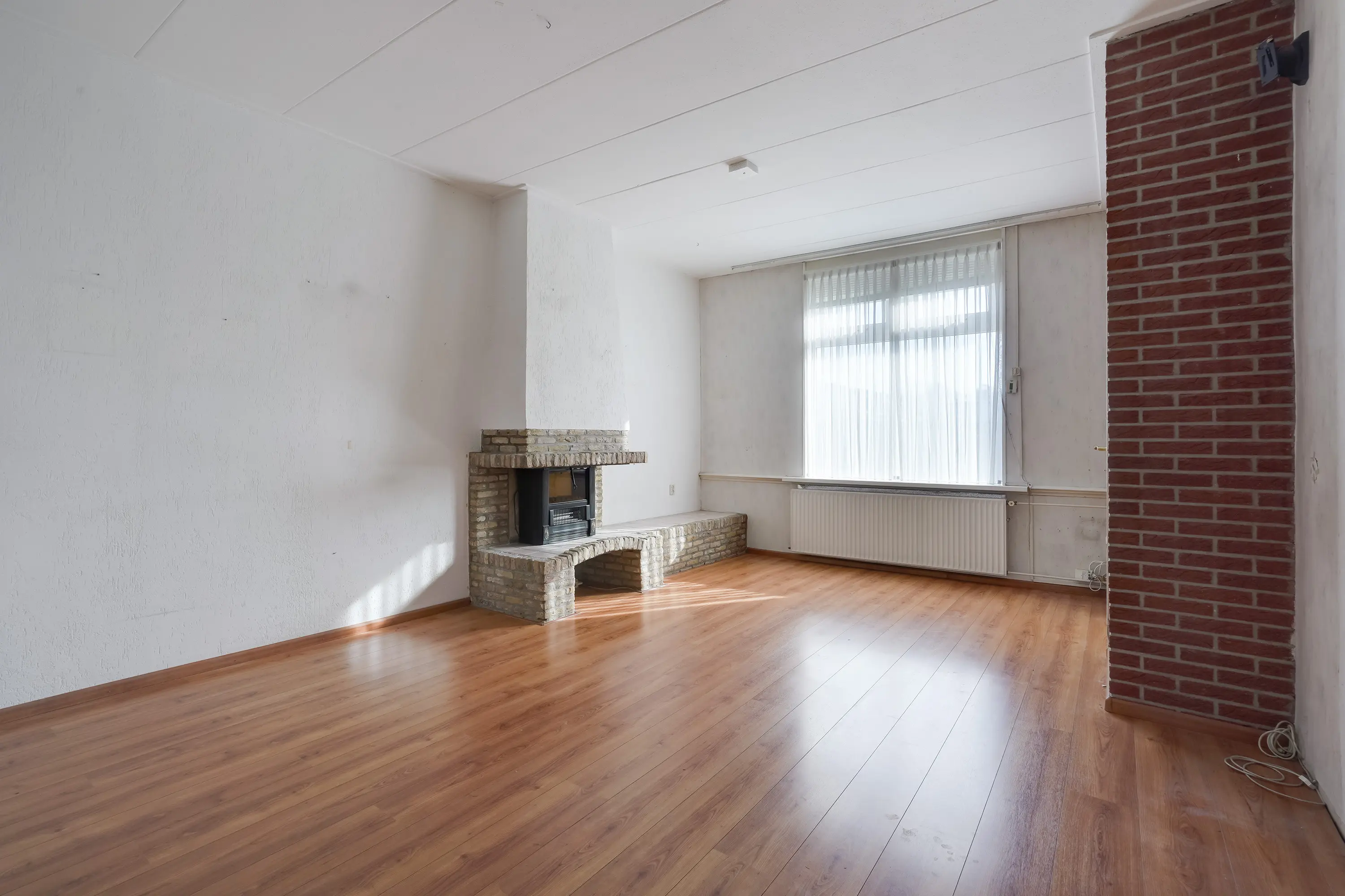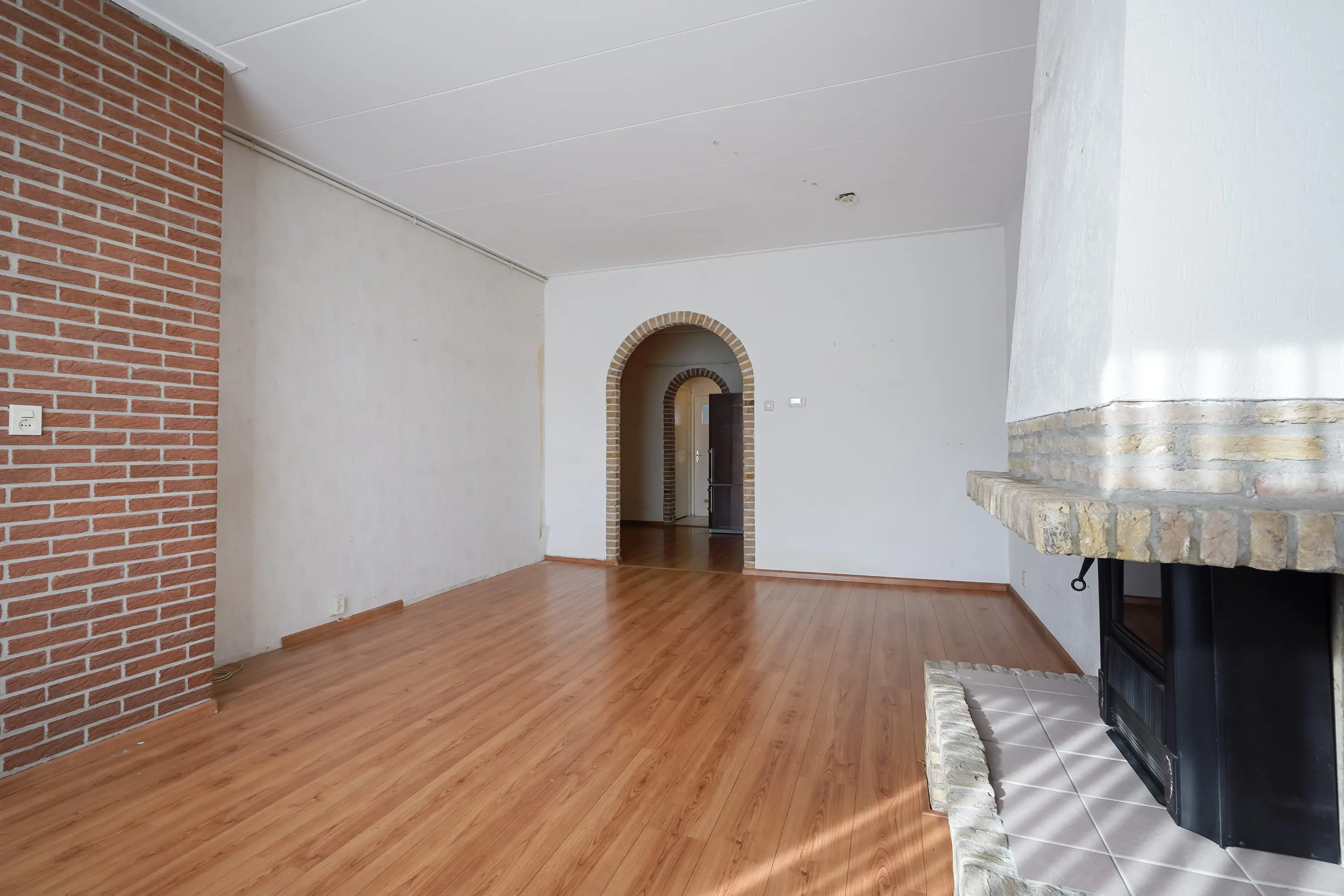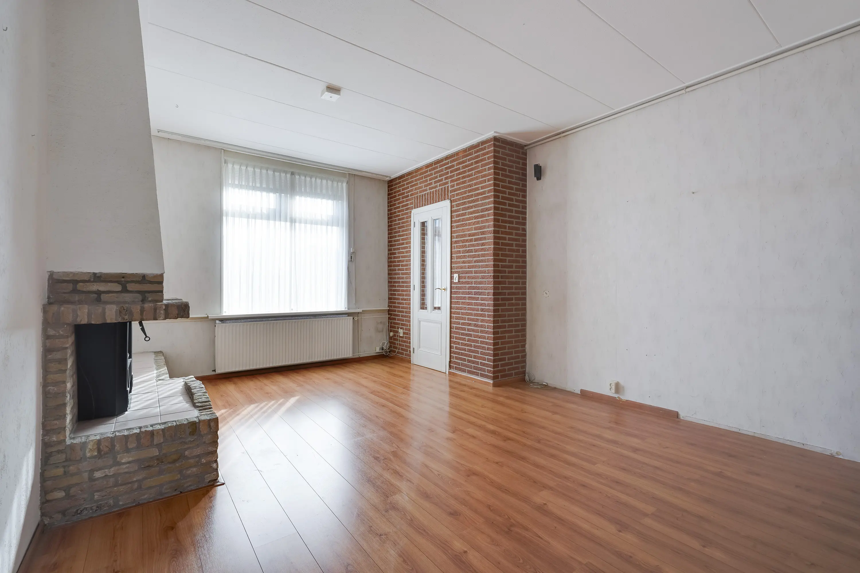 Dit is een ruim vertrek met verhoogd plafond en als eyecatcher een elektrische haard voor sfeervolle avonden.