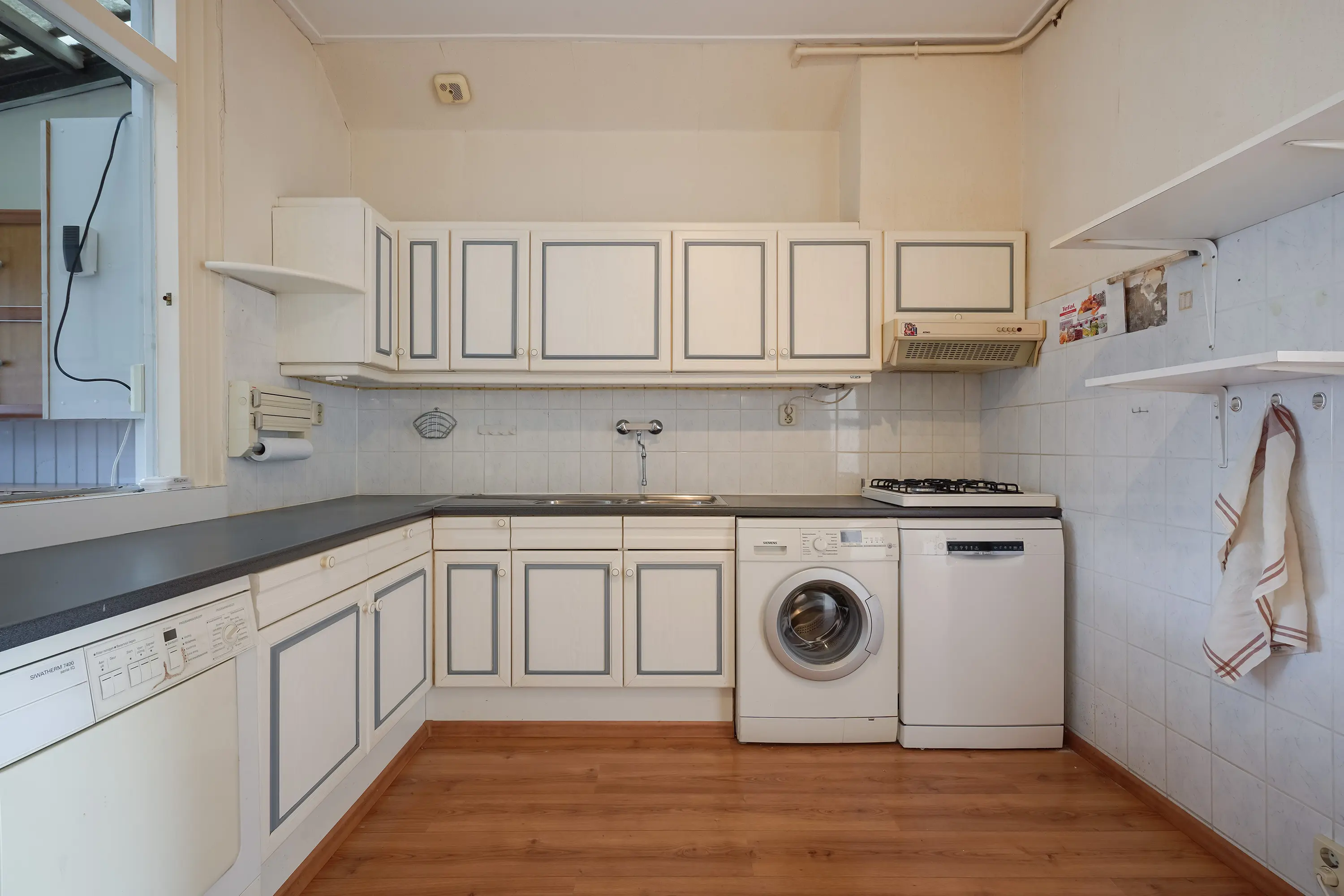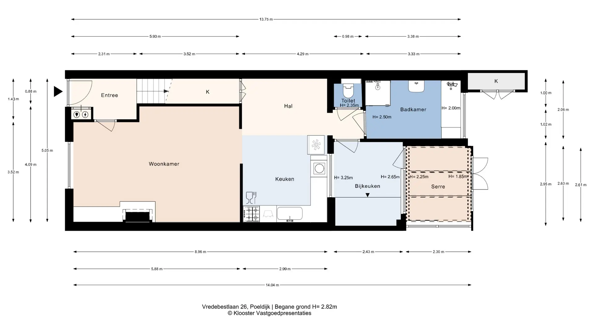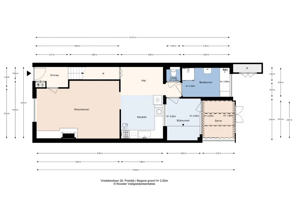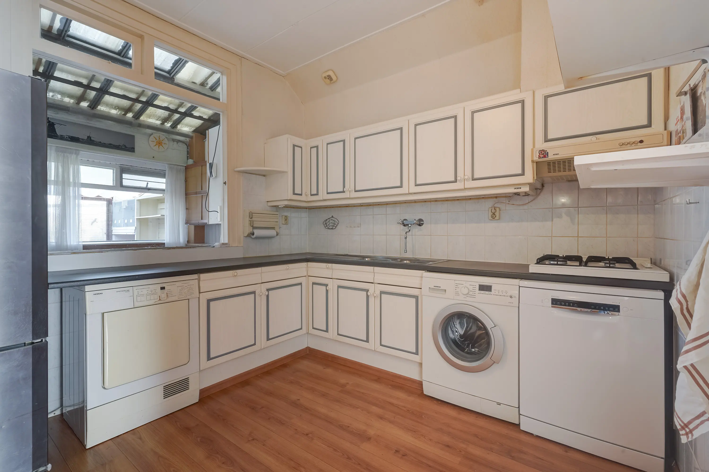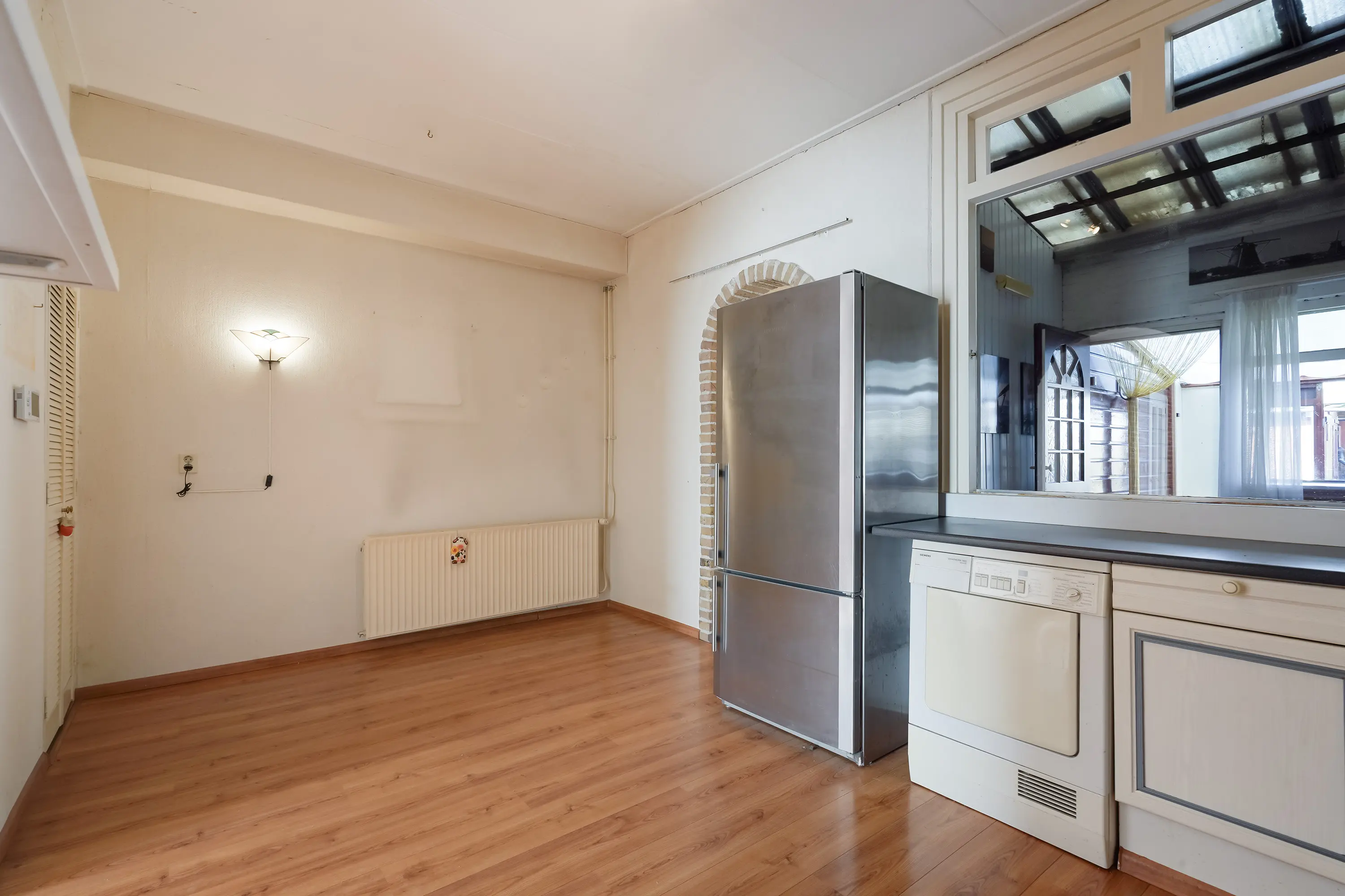 Naast een ruime halfopen keuken beschikt de woning over een praktische bijkeuken met aangrenzende serre.