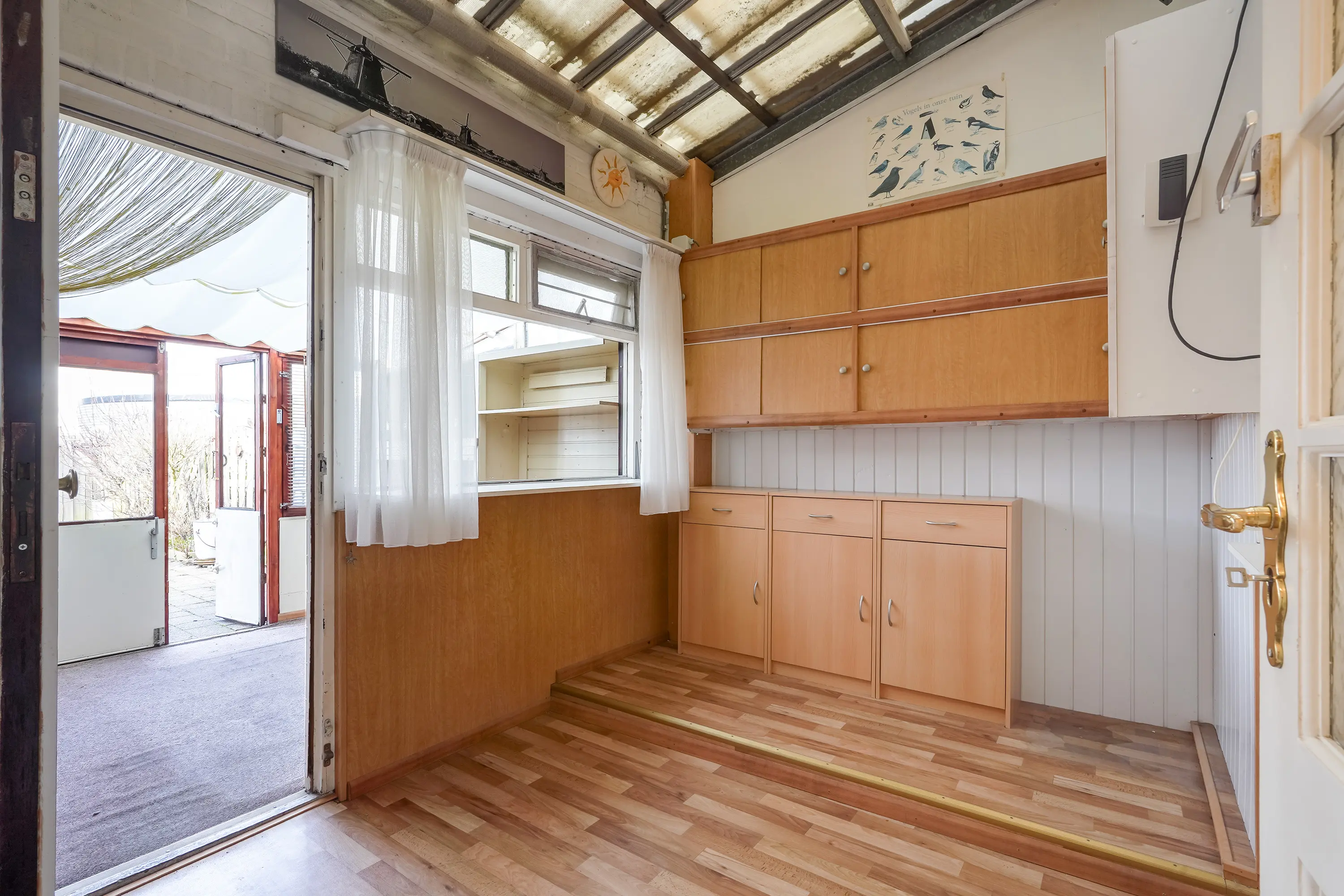 Zowel de bijkeuken en de aangrenzende serre zijn voorzien van kunststof dakplaten. Waar de bijkeuken ideaal is voor extra bergruimte, kunt u in de serre bij wat minder weer toch genieten van het buitenleven.