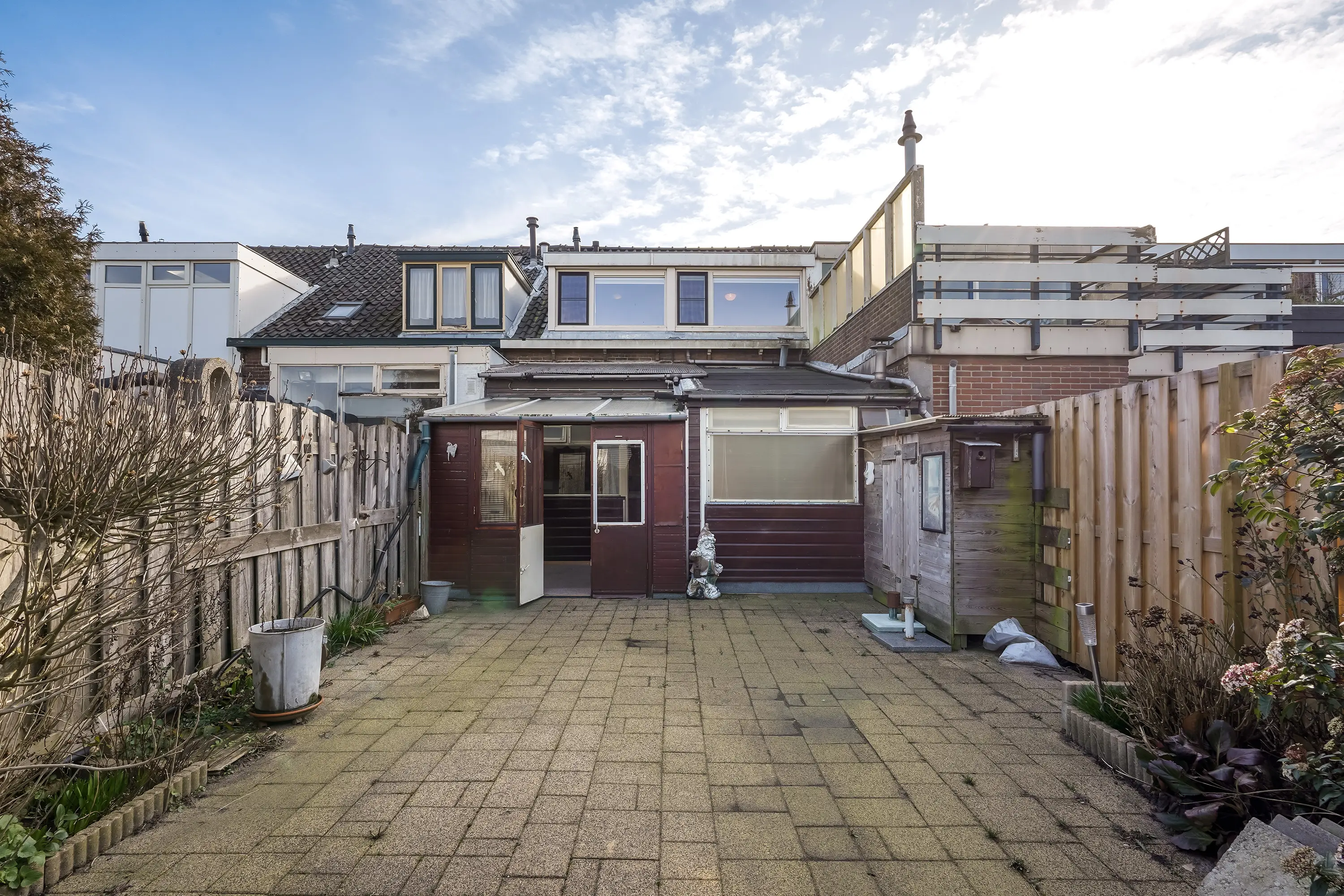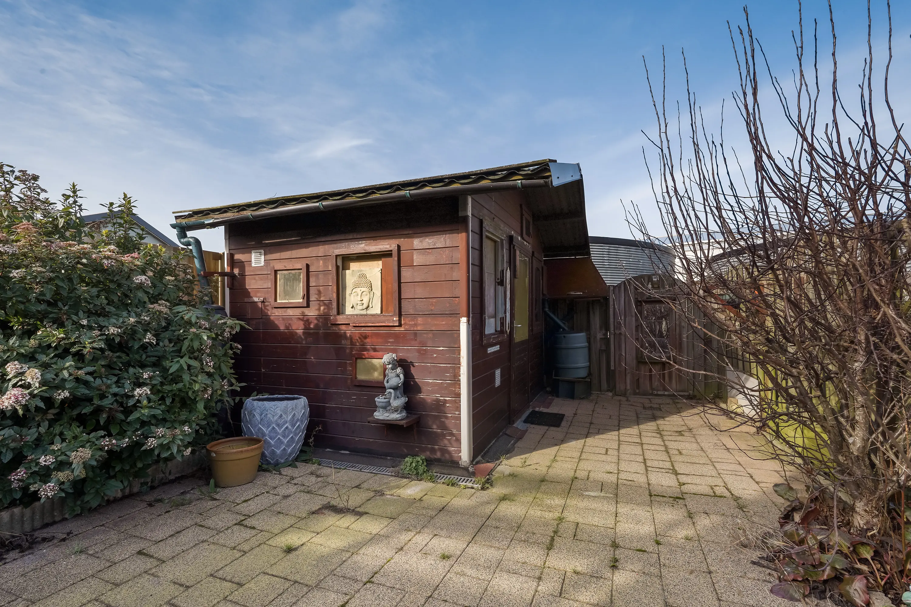 - Diepe achtertuin op het noordwesten, met achterom en berging;