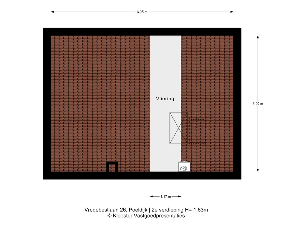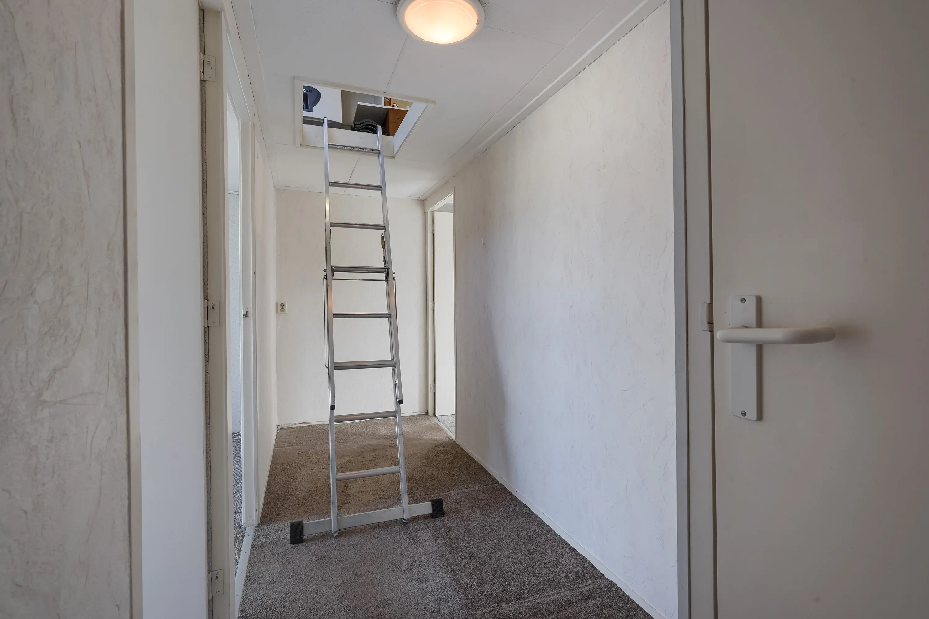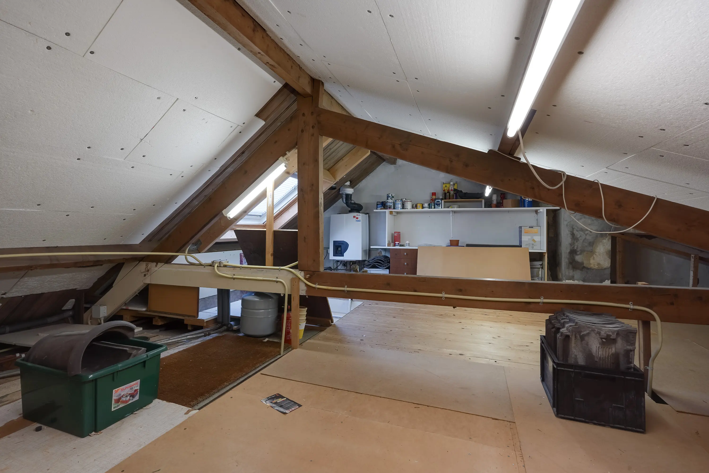 De vliering erboven is uitermate geschikt voor opbergruimte.