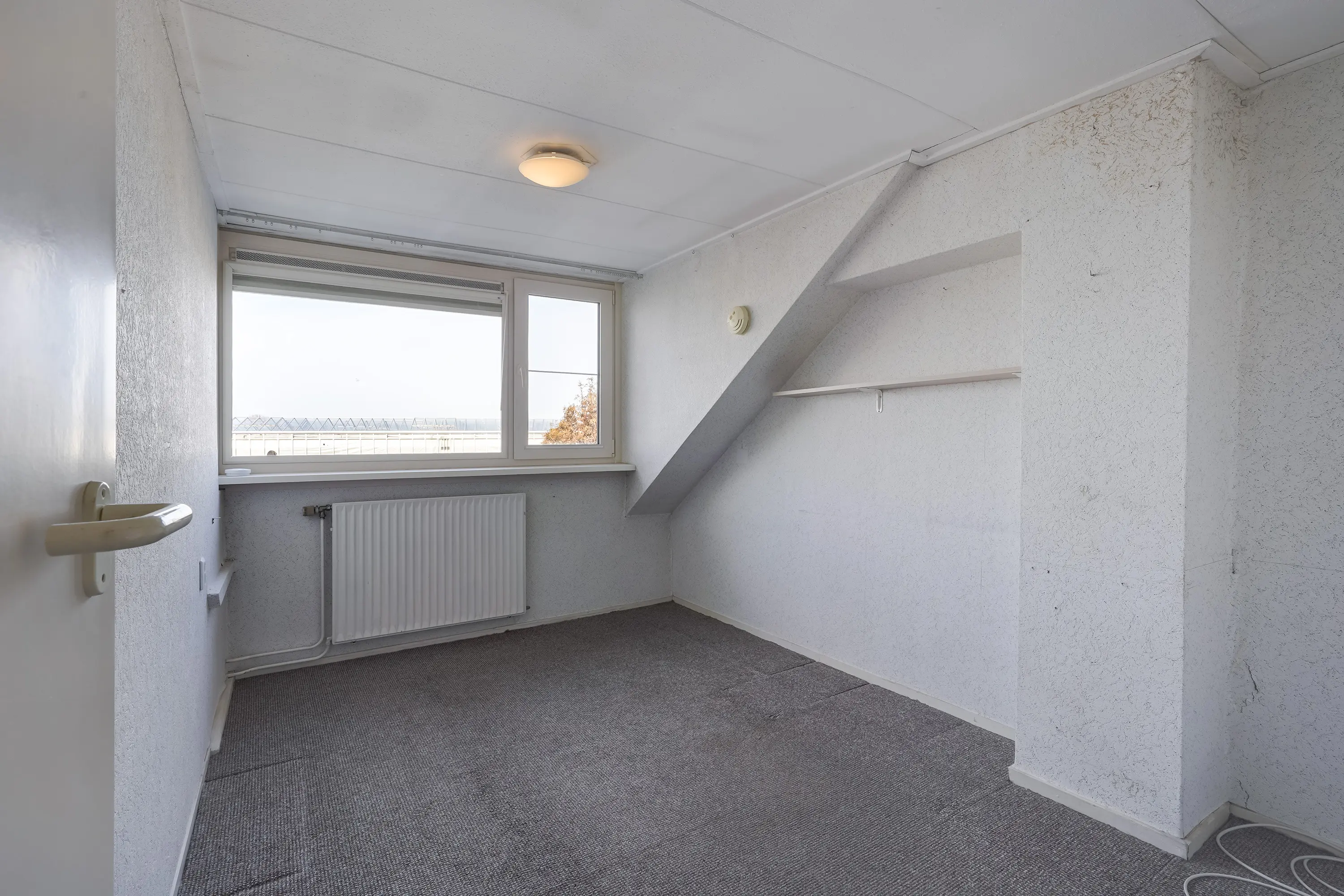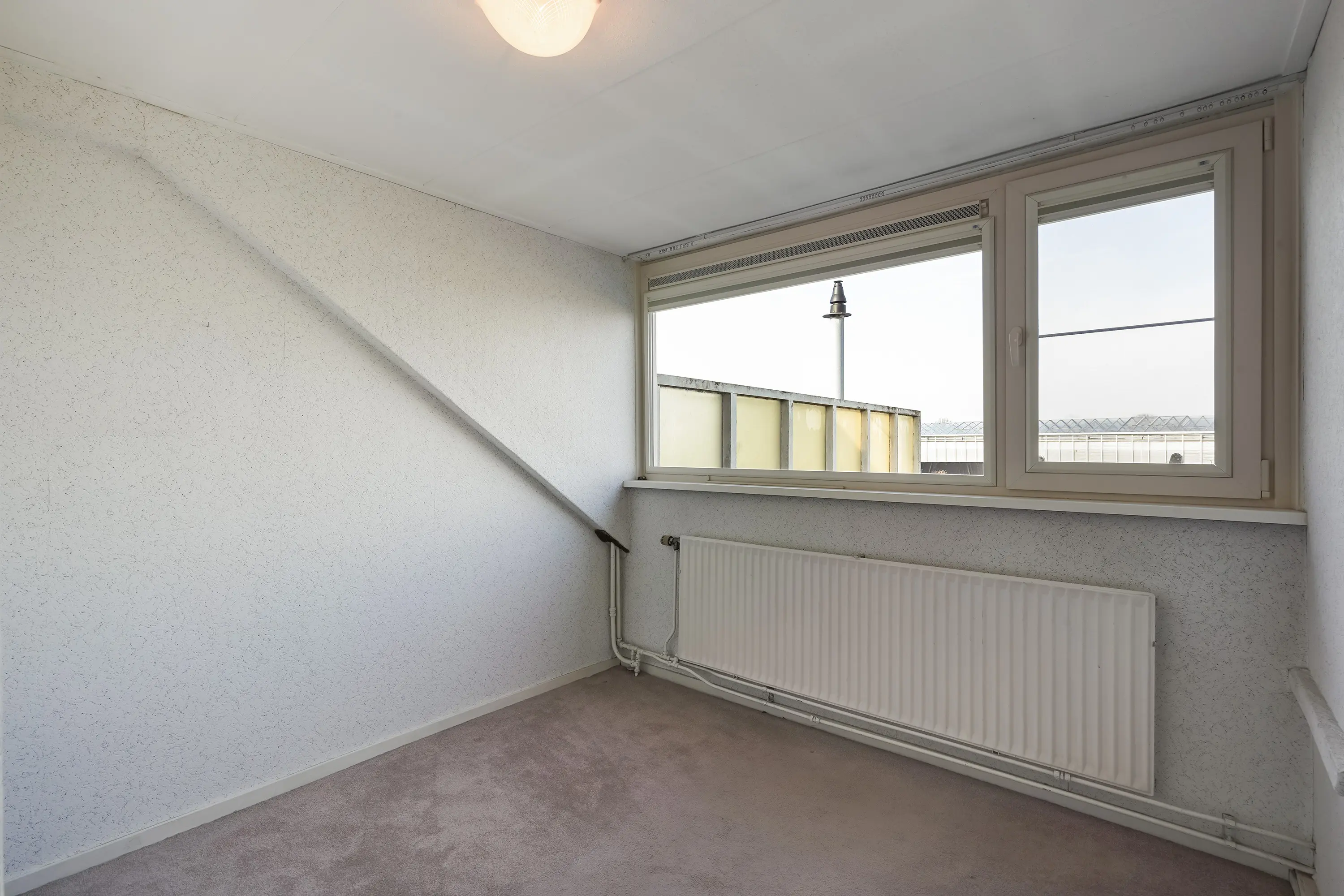 Slaapkamer twee en drie, beide aan de achterzijde, beschikken eveneens over kunststof kozijnen in de woningbrede dakkapel. Dit biedt niet alleen extra leefruimte, maar ook een fraai uitzicht op de achtertuin en de achterliggende Westlandse kassen.