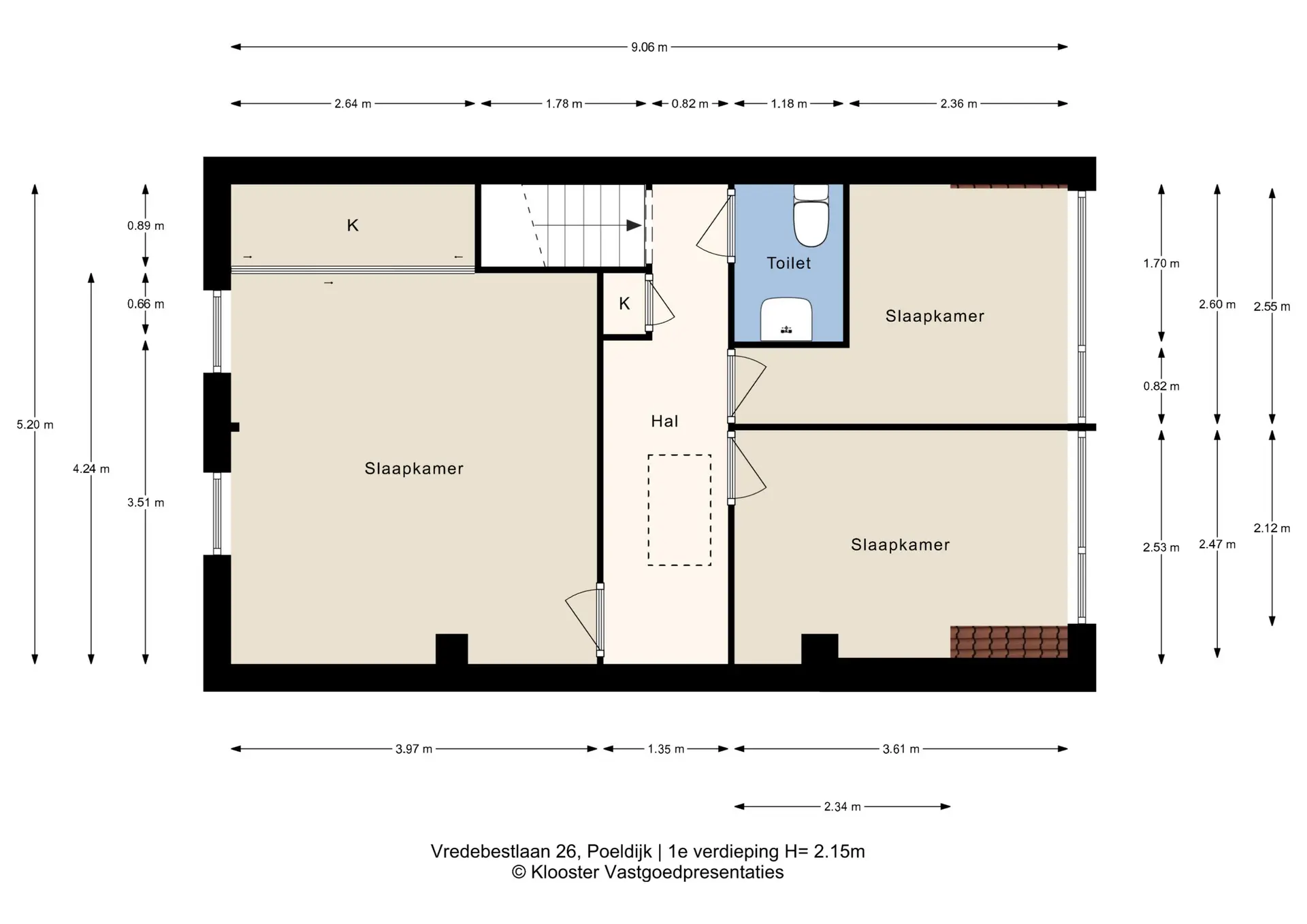 - Drie slaapkamers en separate toiletruimte op de verdieping;
