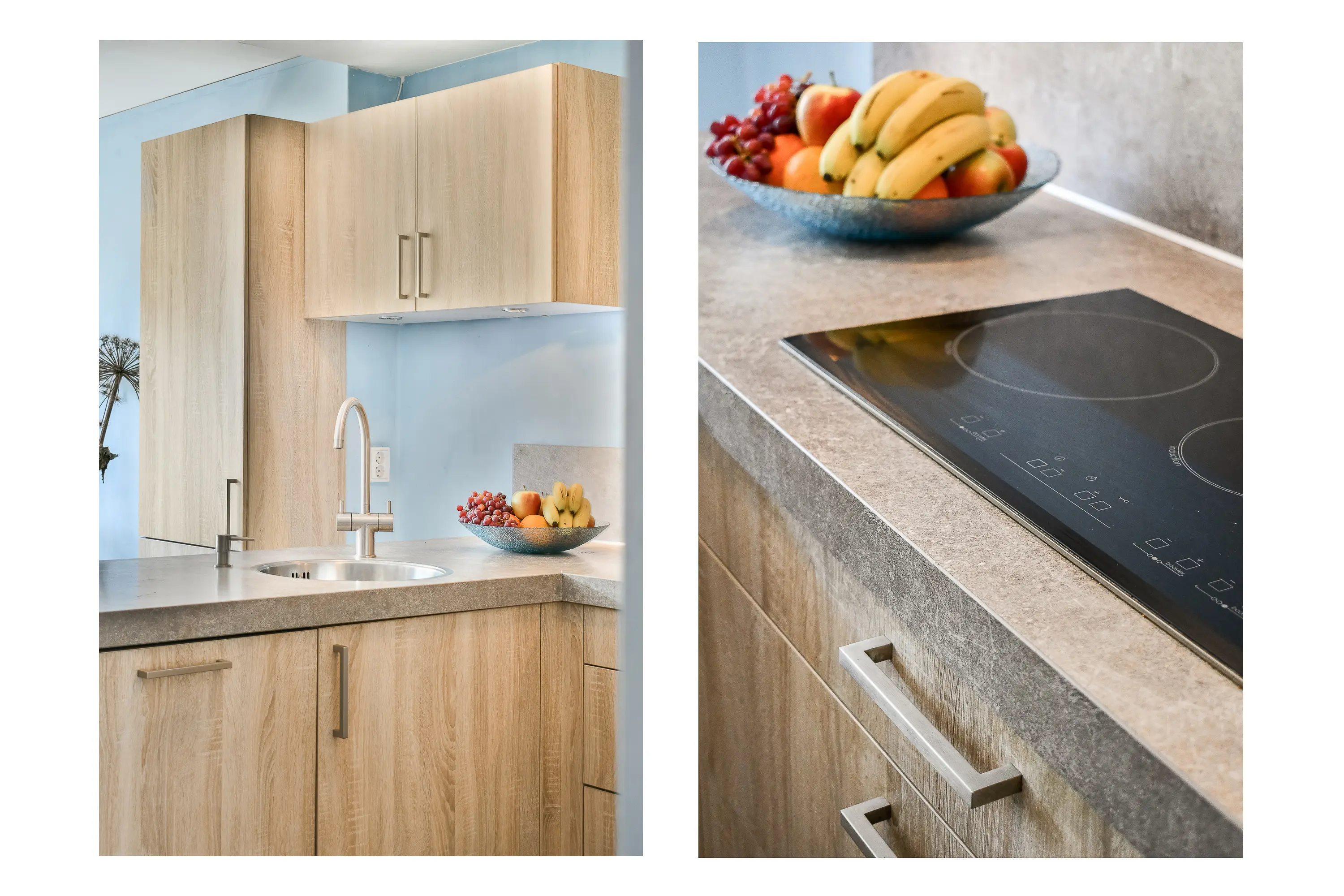 De open keuken centraal in de woonkamer, is circa 7 jaar geleden vernieuwd, compleet uitgevoerd met onder andere een inductiekookplaat, combi-oven, spoelbak met mengkraan, vaatwasser, koelkast, handige hoekcarrouselkast en overige bergruimte. Zowel de koelkast als de vaatwasser zijn recent vernieuwd (2024/2025).