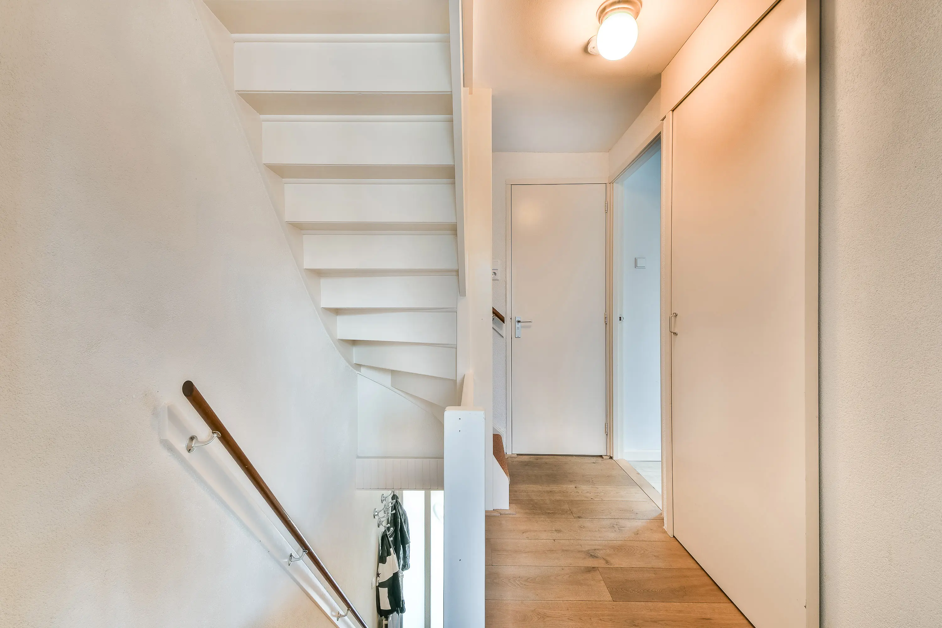 Op de overloop is er een praktische wasruimte met aansluitingen voor wasmachine en droger, losse kasten én een vaste kast waarin de cv-combiketel (ca. 6–7 jaar oud) is opgesteld. Tevens is hier een werkplek gecreëerd, welke vrij in te delen is.