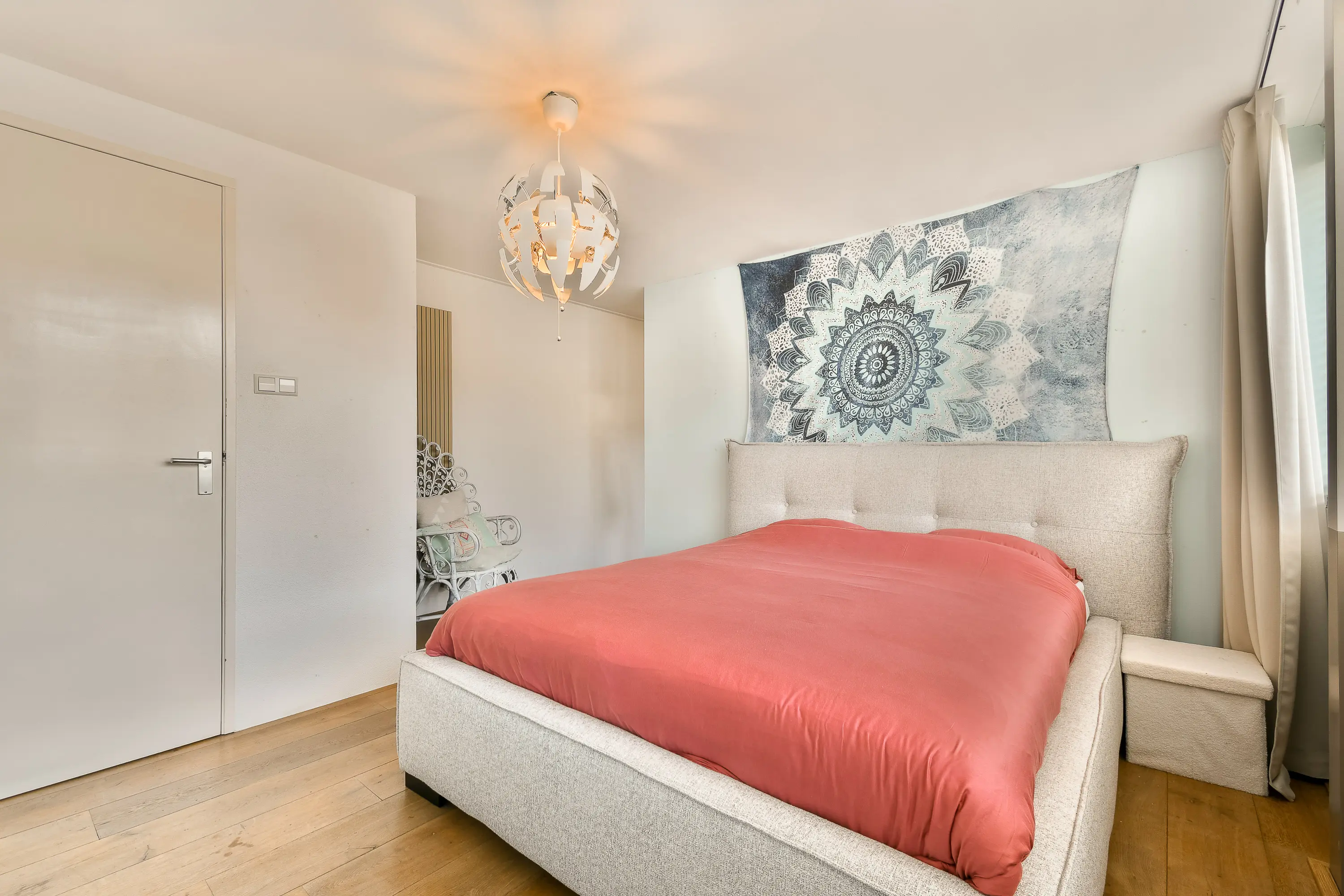 - Ruime hoofdslaapkamer met toegang tot balkon en inloopkast;