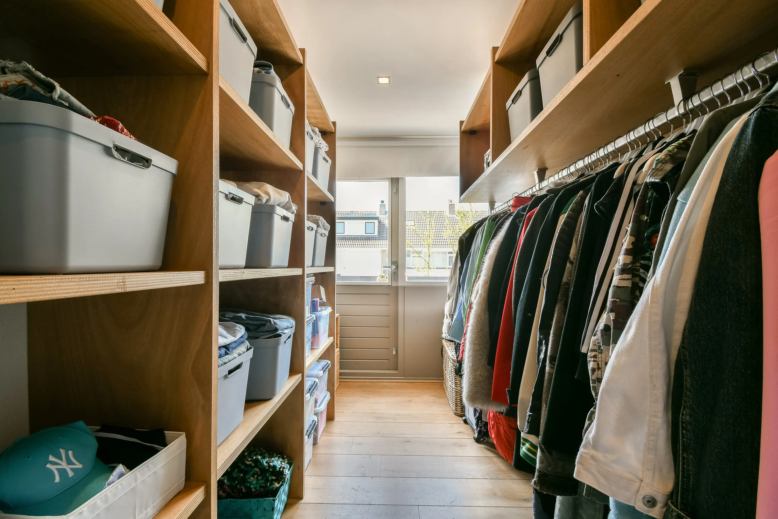 De royale hoofdslaapkamer aan de achterzijde is een absoluut pluspunt: vanuit deze kamer is er directe toegang tot het balkon. Daarnaast beschikt deze verdieping over een fraaie inloopkast, uitgevoerd met vaste kasten.