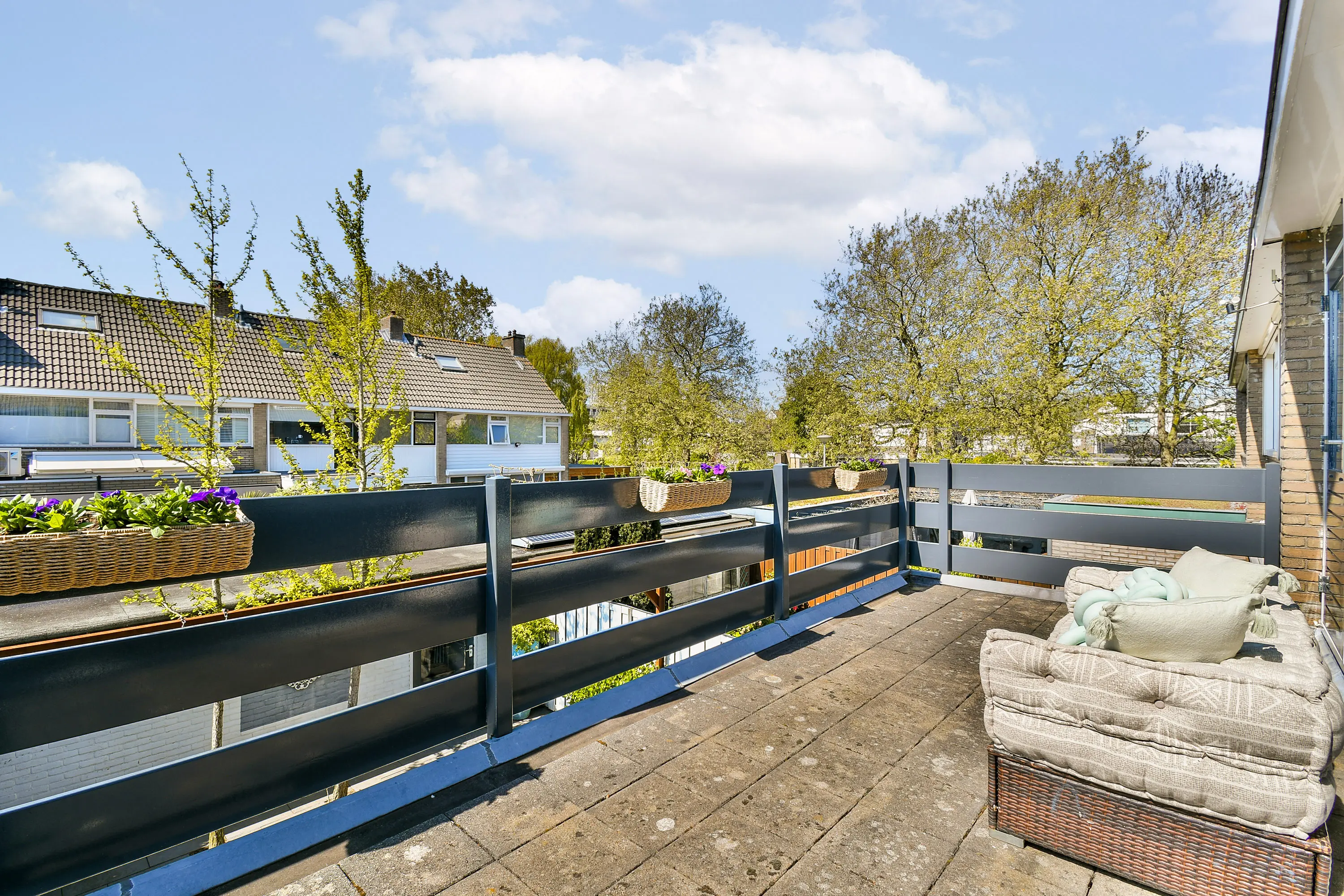 Het balkon, welke eveneens vanuit de inloopkast te betreden is, biedt een extra ruimte om heerlijk van de zon te genieten.