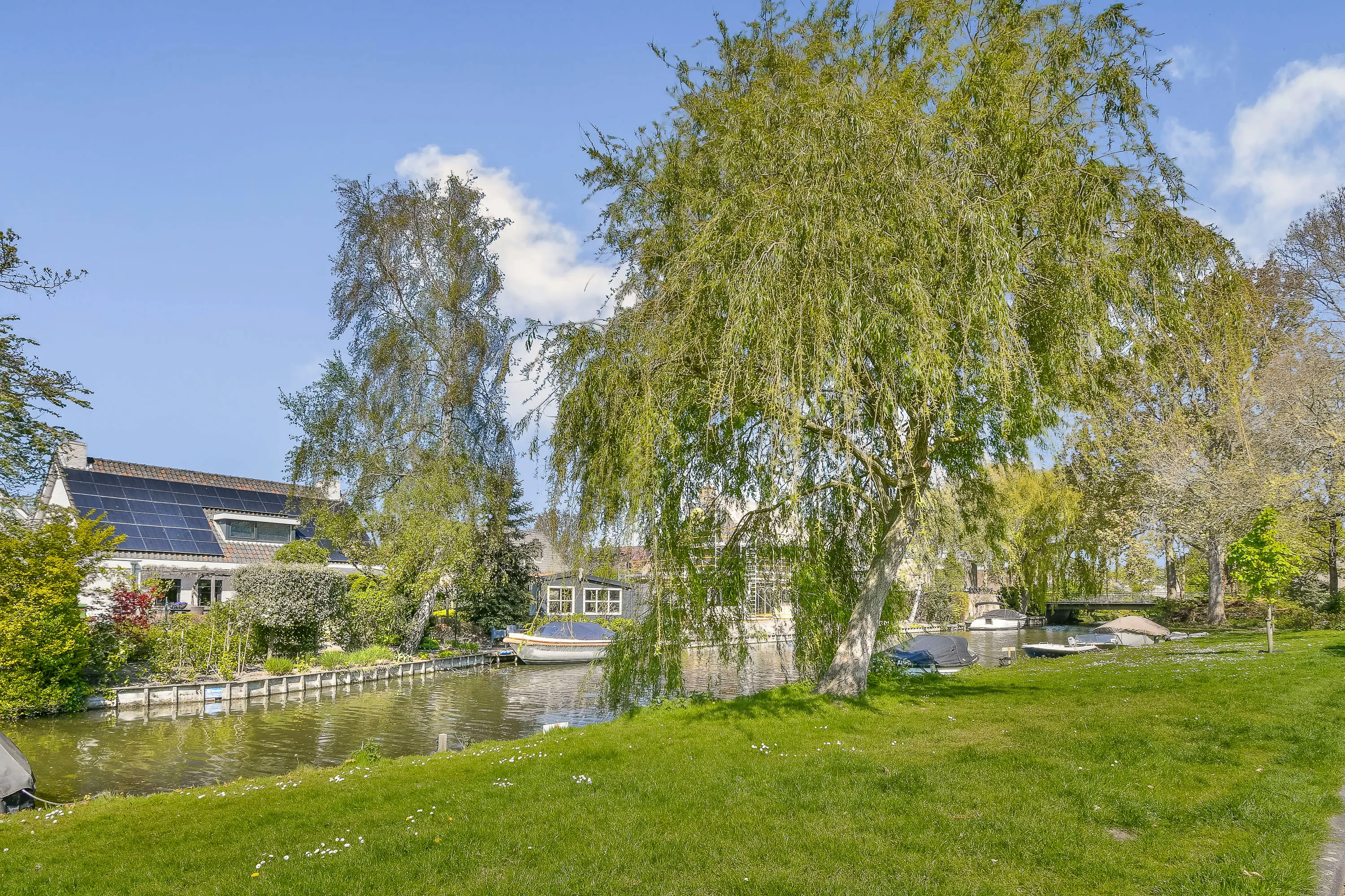 - Gelegen vlakbij het water met mogelijkheid tot aanleggen van een sloep of bootje;