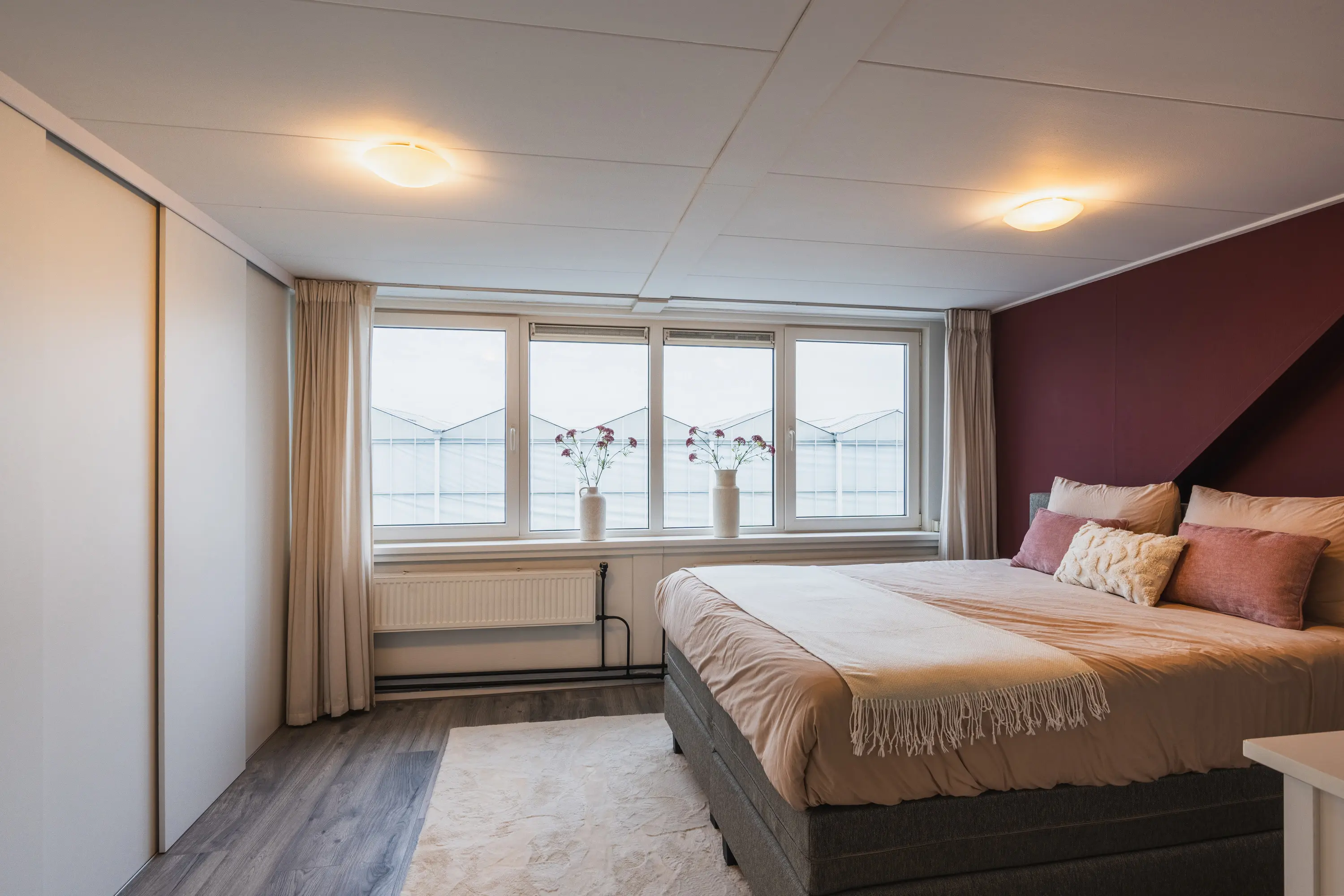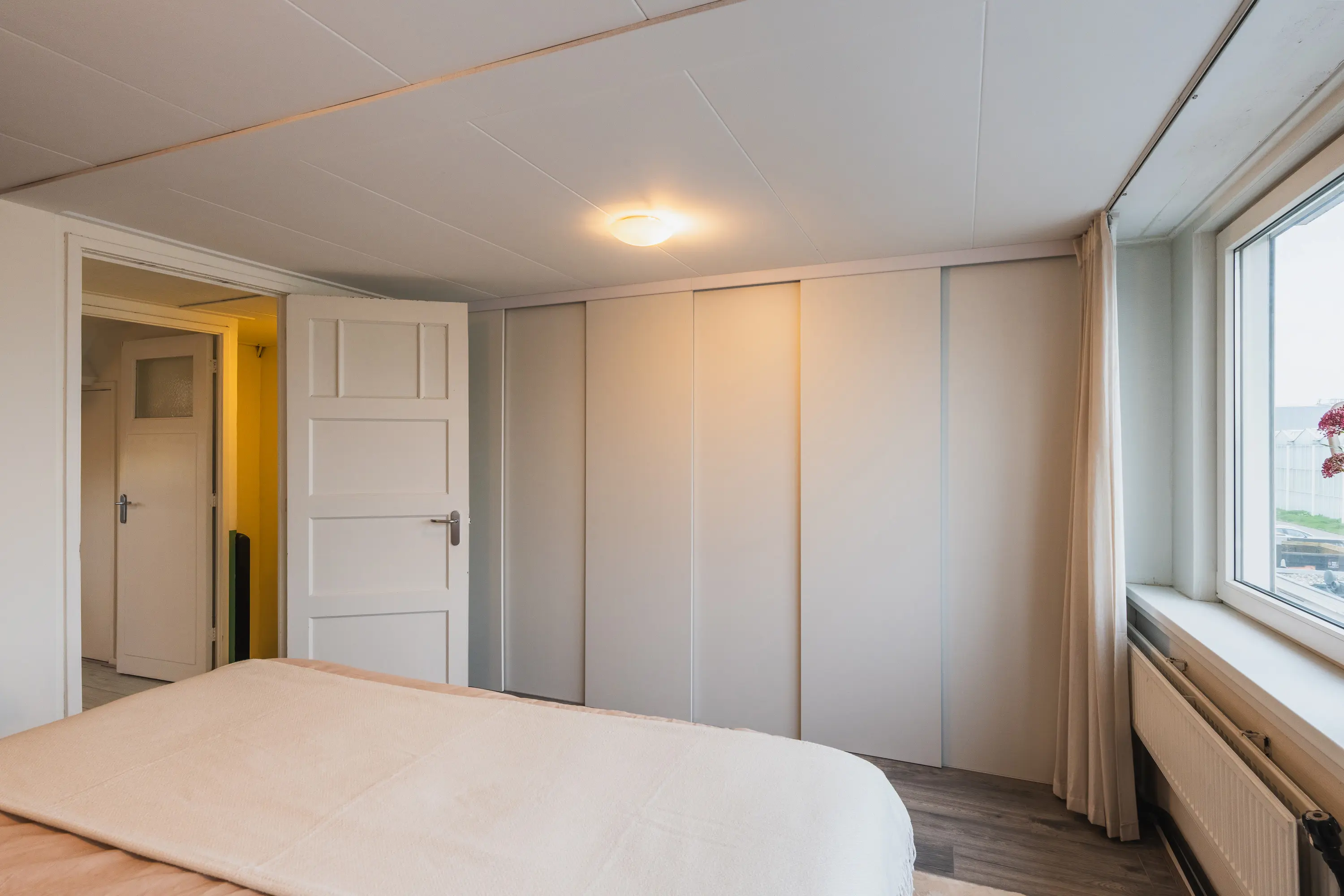 De tweede slaapkamer is eveneens afgewerkt met laminaat en strakke wanden en is multifunctioneel inzetbaar als slaapkamer, thuiswerkplek of hobbyruimte. Daarnaast beschikt deze kamer over een extra ingebouwde kastruimtes, wat zorgt voor voldoende opbergmogelijkheden.