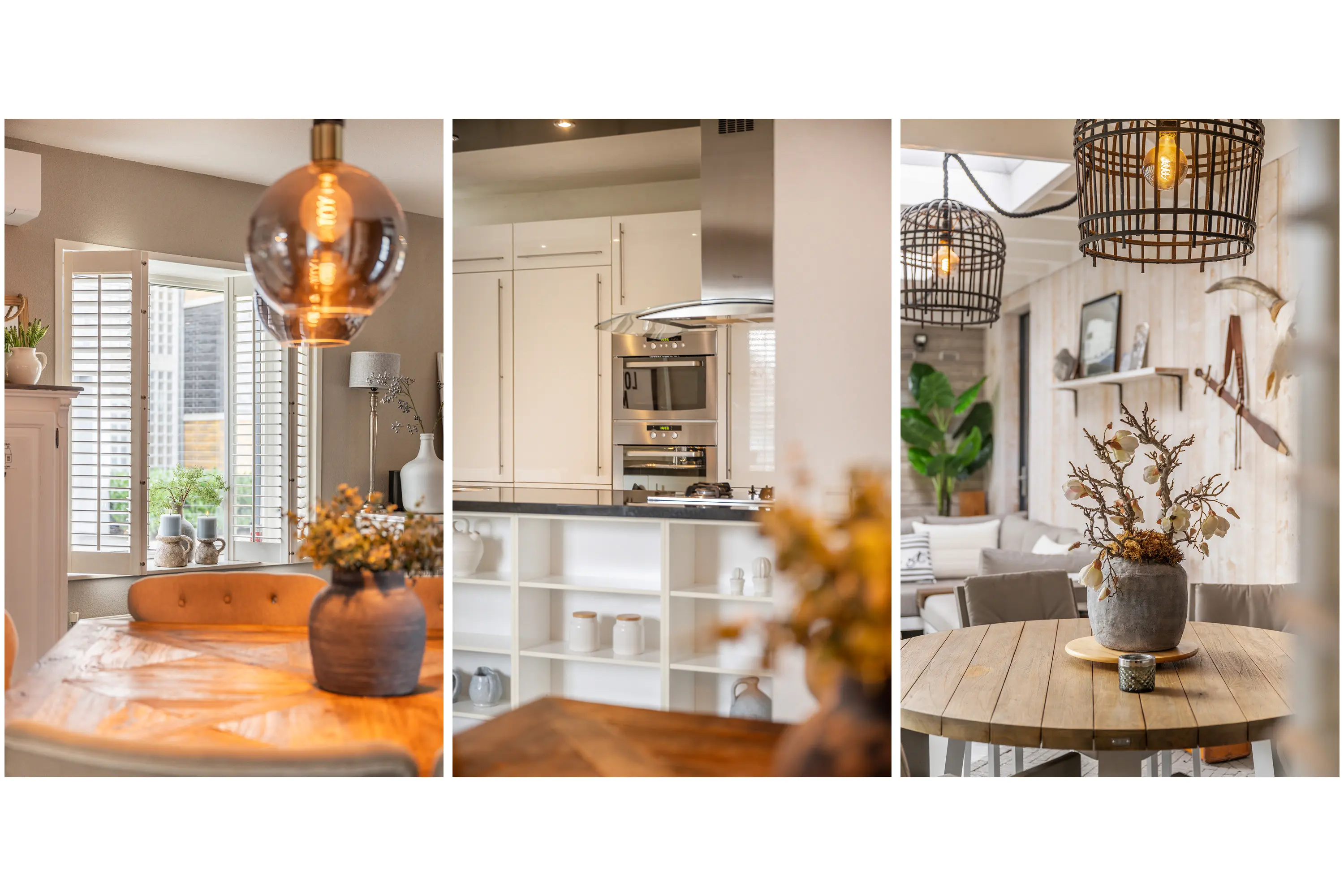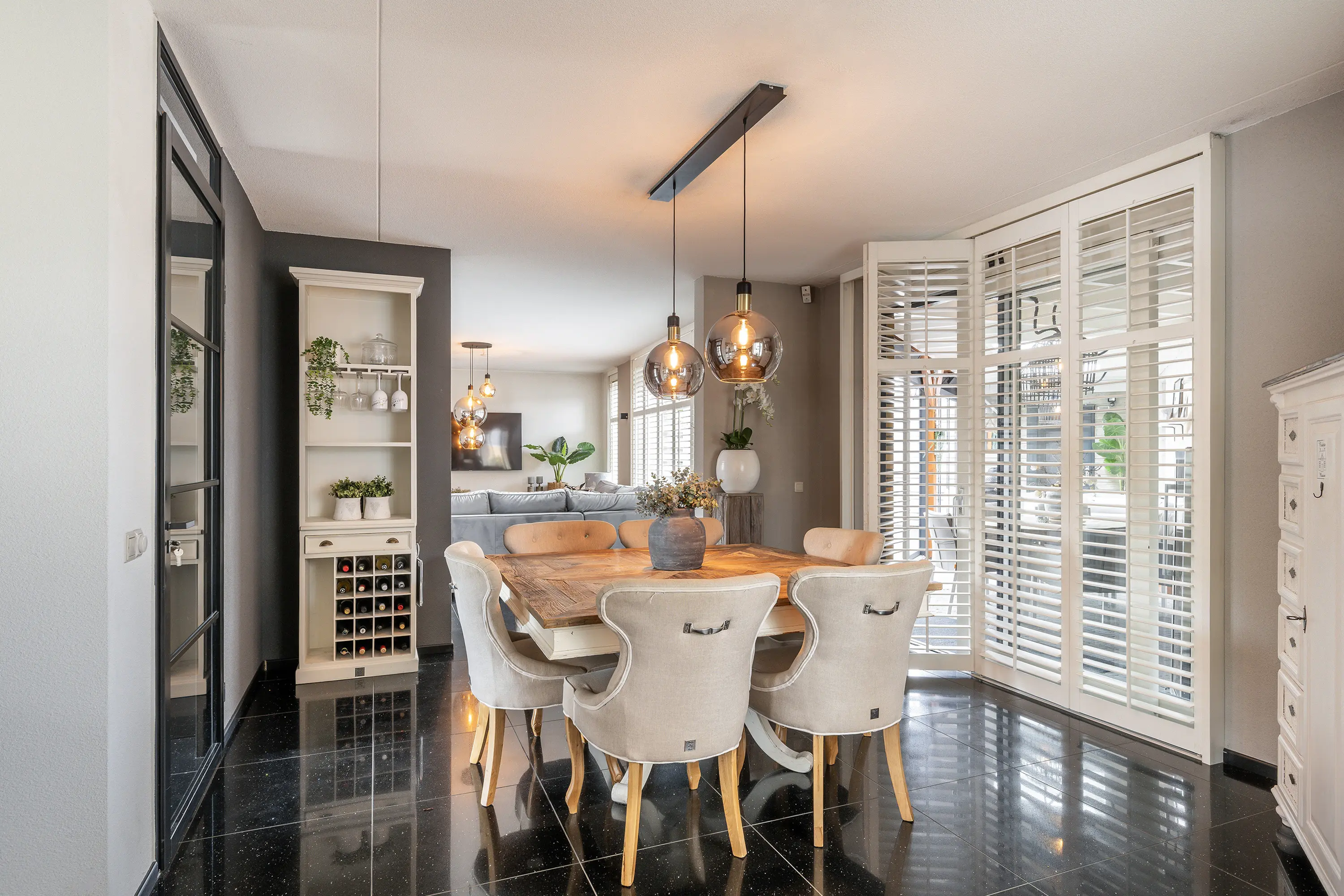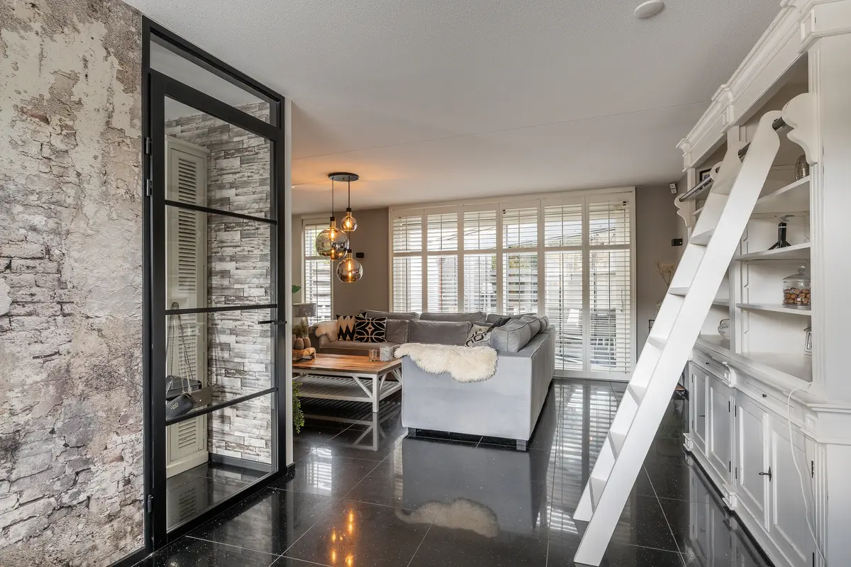Het strakke stucwerk en de zeer luxe tegelvloer zorgen hier voor een rustige, moderne basis die met iedere woonstijl te combineren is.