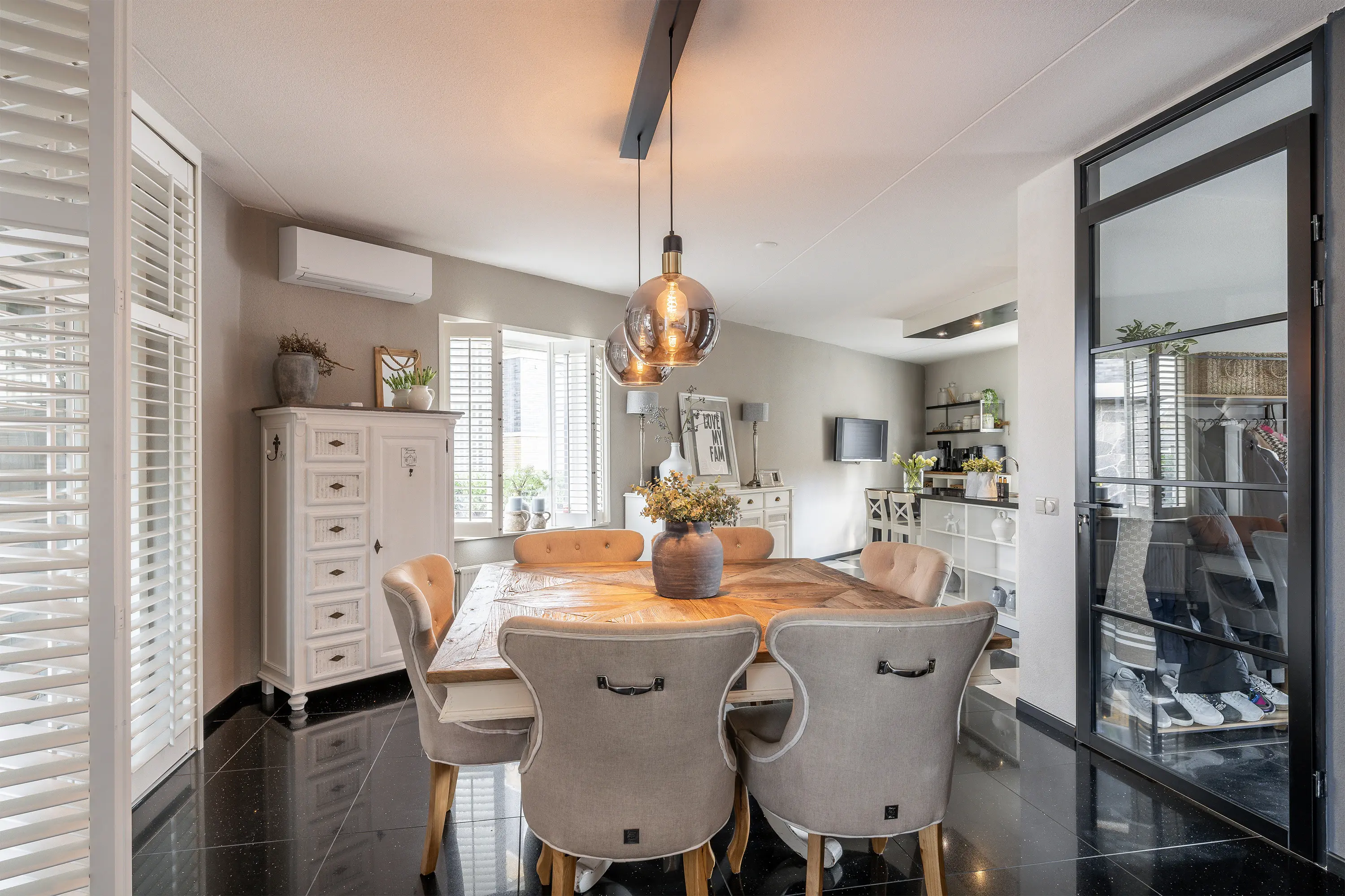 - Woonkamer met een royale basismaat, thans ingedeeld middels een brede zitkamer en ruime leefkeuken;