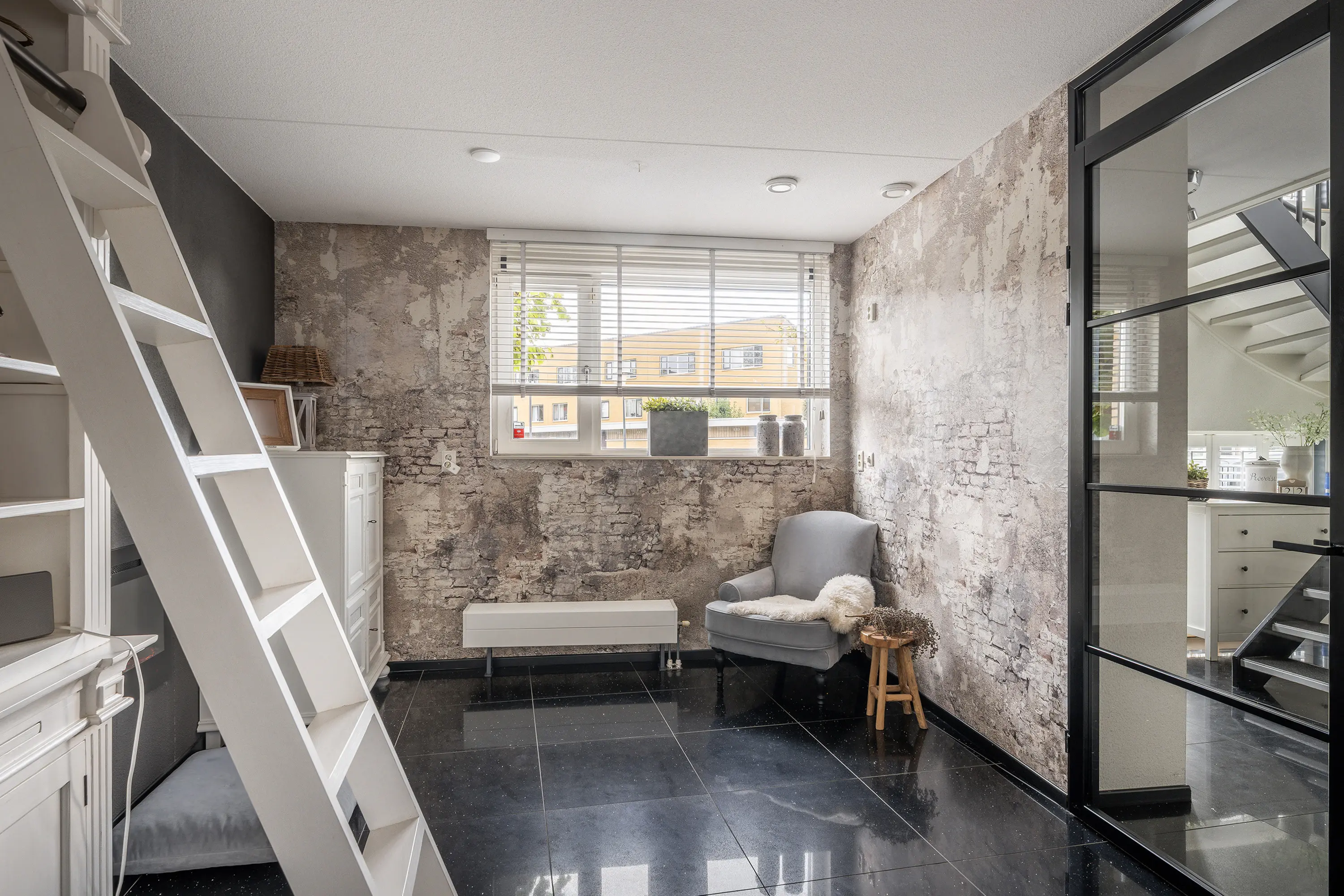 Aan de voorzijde van de woning bevindt zich een sfeervolle, knusse ruimte met een elektrische haard. De ideale plek om te ontspannen met een boek of een goed glas wijn.