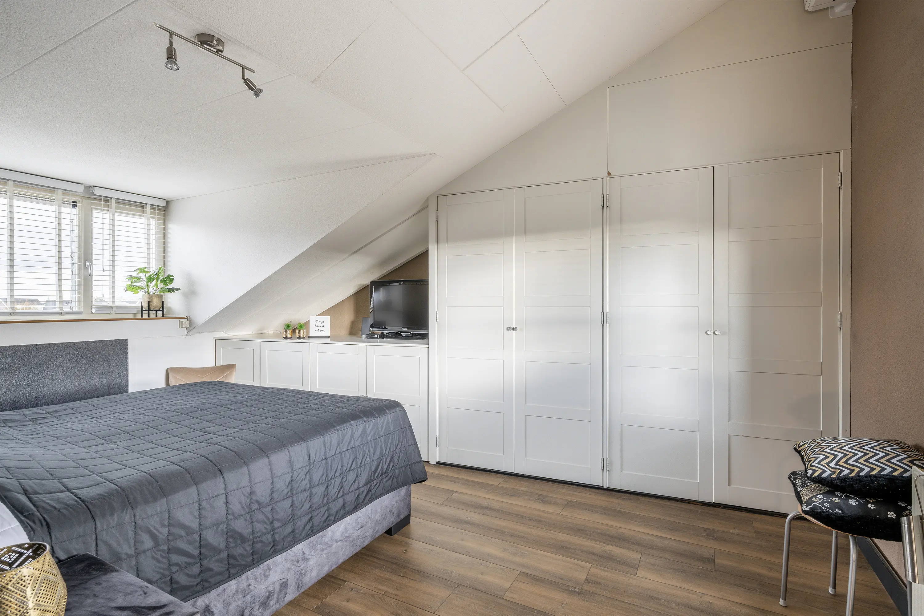 De grootste slaapkamer van de eerste verdieping beschikt over airconditioning en een grote (losse) kast.