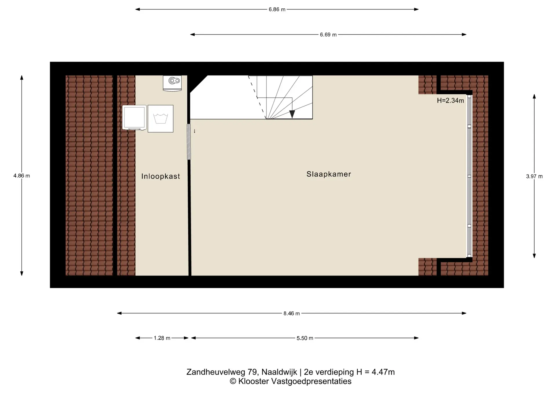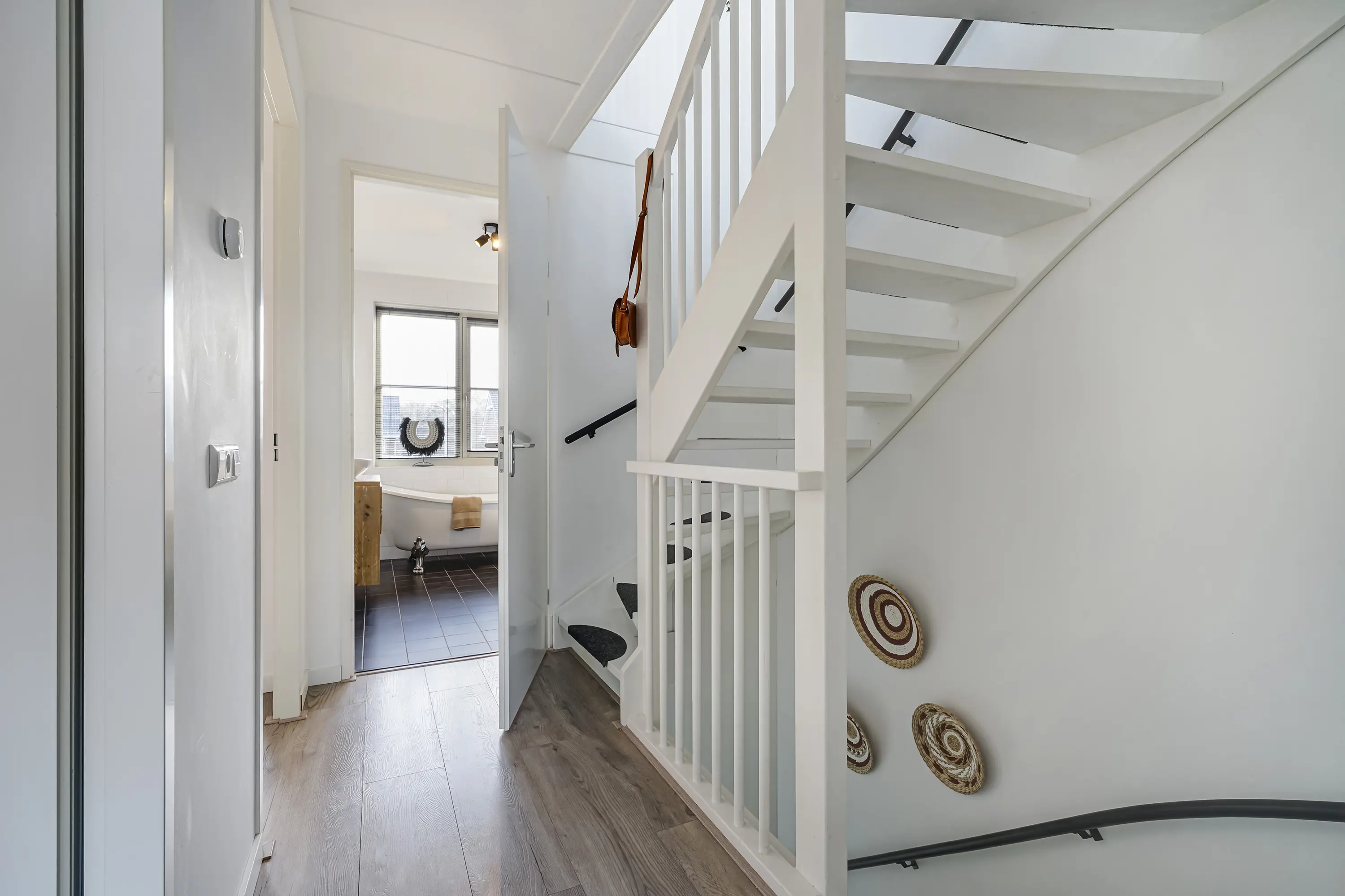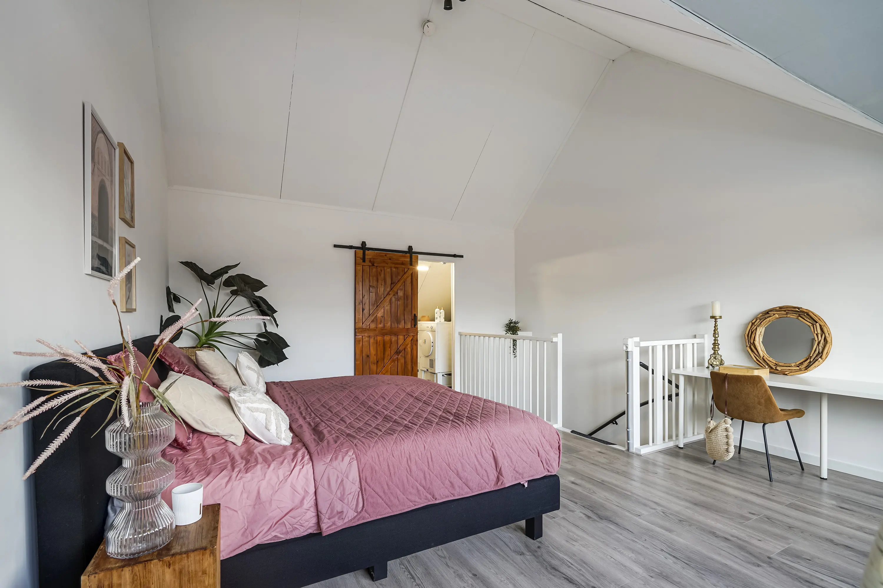 Een vaste trap geeft toegang tot de zolderverdieping. De zolderverdieping is goed bemeten en voelt, mede dankzij de hoogte, ook extra ruim aan. De oppervlakte is ideaal voor het gebruik als hoofdslaapkamer, werk- of hobbykamer. Bovendien beschikt deze verdieping over een praktische inloopkast en ruimte voor de wasmachine, droger en de cv-ketel (Intergas, 2018).
