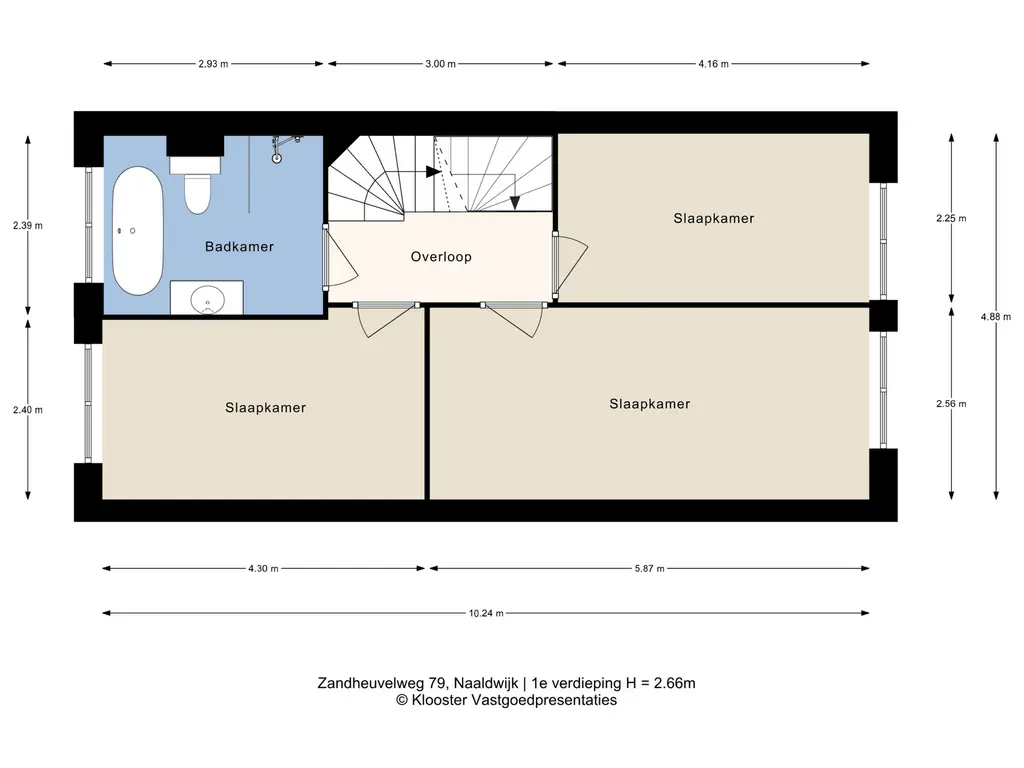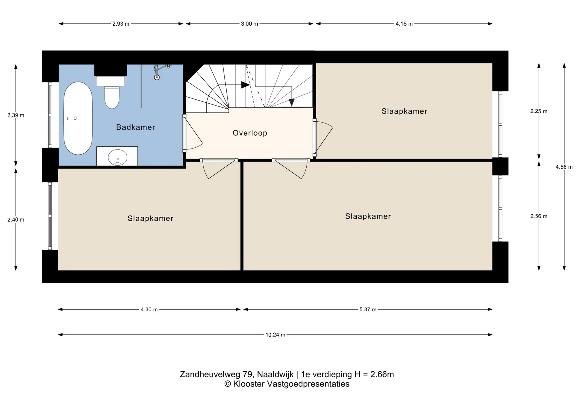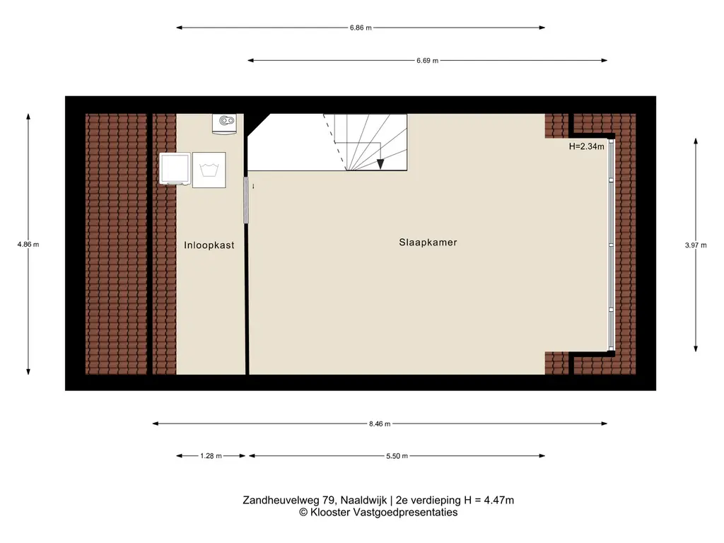 Een vaste trap geeft toegang tot de zolderverdieping. De zolderverdieping is goed bemeten en voelt, mede dankzij de hoogte, ook extra ruim aan. De oppervlakte is ideaal voor het gebruik als hoofdslaapkamer, werk- of hobbykamer. Bovendien beschikt deze verdieping over een praktische inloopkast en ruimte voor de wasmachine, droger en de cv-ketel (Intergas, 2018).