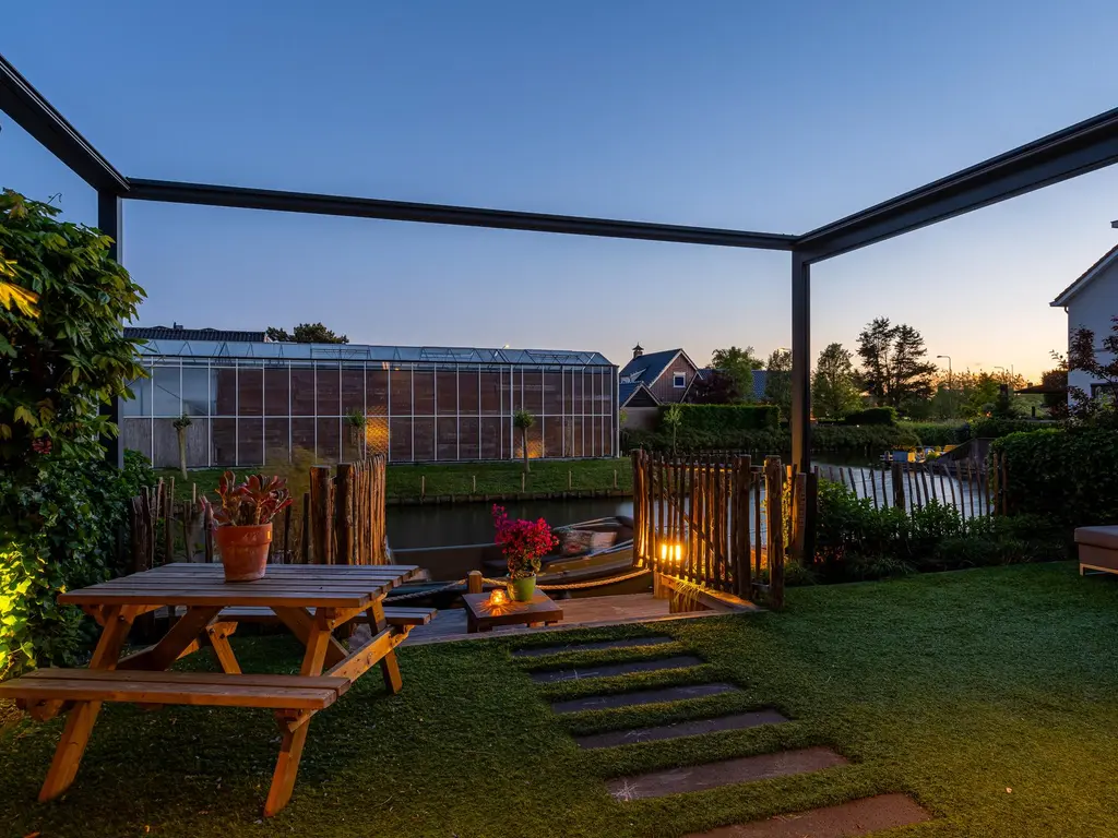 De achtertuin biedt een schitterend vrij uitzicht over het doorgaande vaarwater en is perfect voor liefhebbers van het buitenleven. Het grasveld met stijlvolle staptegels leidt naar een verlaagde vlonder – een verlengstuk van de tuin – waar met gemak een terras gerealiseerd kan worden. Deze vlonder is ideaal om aan te leggen met een boot of gewoon om heerlijk aan het water te genieten.