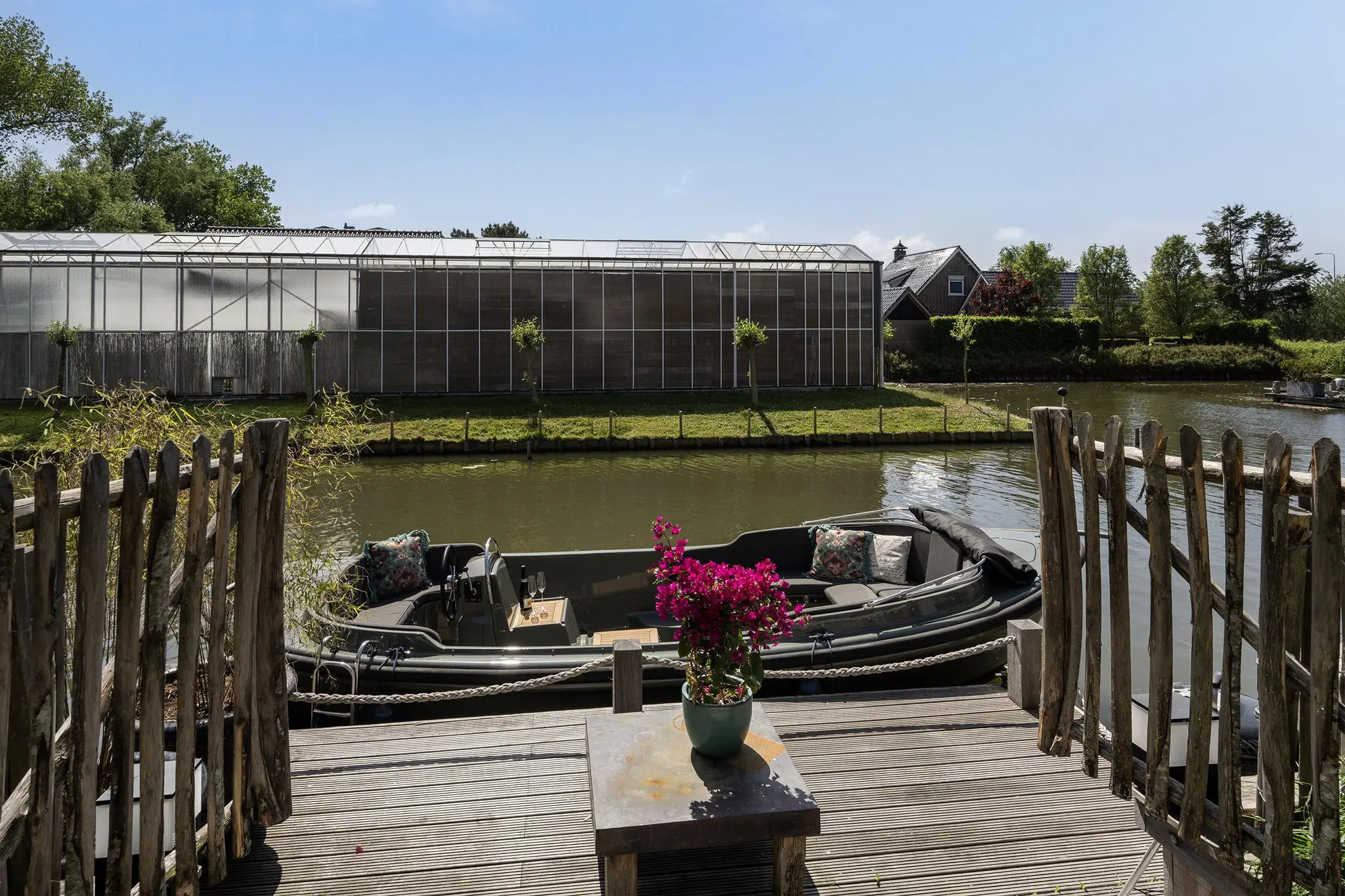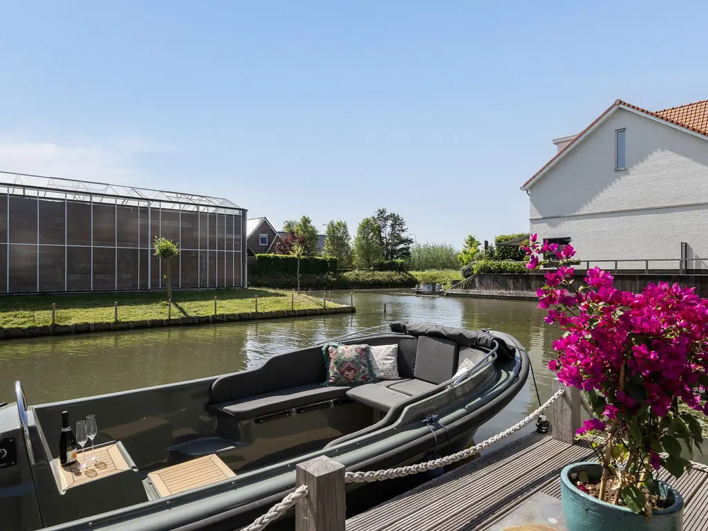 - Achtertuin op het zuidwesten met aanlegsteiger, verbonden aan doorgaand vaarwater;