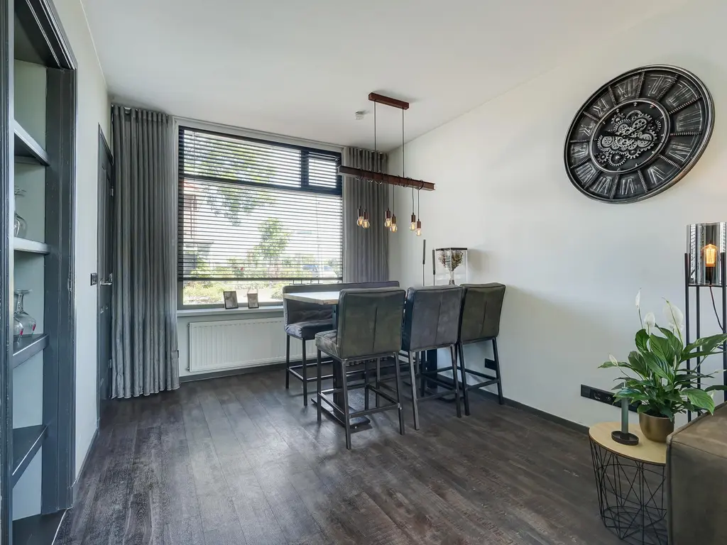 De airconditioning zorgt voor een prettig binnenklimaat tijdens warme zomerdagen. Aan de voorzijde is ruimte voor een eettafel met uitzicht op de straat, terwijl aan de achterzijde een gezellige zithoek is gesitueerd met uitzicht op de groene achtertuin.
