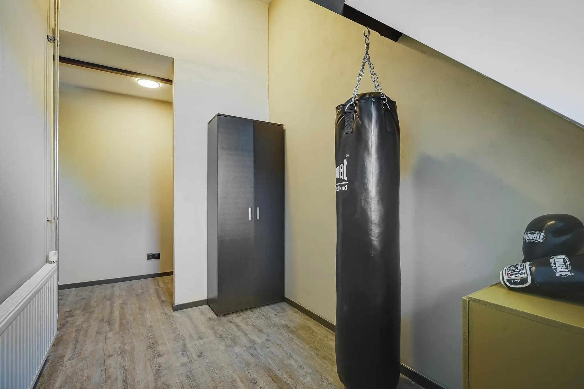 Via de trapopgang bereikt u een ruime overloop, die momenteel is ingericht als slaapkamer en voorzien van airconditioning. Een andere kamer is slim verdeeld in drie functionele ruimtes: een werkplek, een sportkamer en een badkamer. Buiten de badkamer is deze verdieping voorzien van een houtlook pvc-vloer.