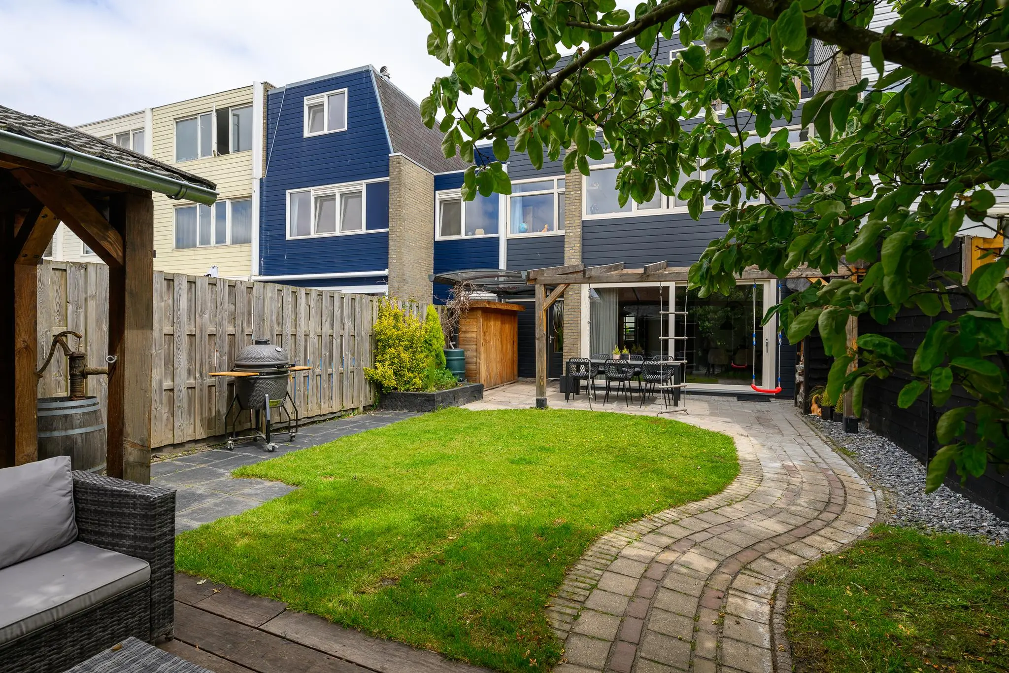 Via de schuifpui in de woonkamer stroomt het daglicht royaal naar binnen én loopt u zo de gezellige achtertuin in. Met een diepte van ca. 15 meter en een breedte van ca. 7,5 meter is dit een heerlijke buitenruimte die volop mogelijkheden biedt. De tuin is speels en sfeervol ingericht met een combinatie van tegels en groene borders. Onder de pergola en overkappingen zijn meerdere zitgedeeltes gecreëerd, wat zorgt voor gezellige hoekjes om te ontspannen, eten of borrelen – ideaal voor elk moment van de dag. Aan zowel de achterzijde als de zijkant van de woning bevinden zich twee praktische bergingen, perfect voor het stallen van fietsen of als extra opslagruimte. Eén van de bergingen is momenteel ingericht als een gezellige mancave, maar kan naar eigen wens worden ingericht. De mancave is voorzien van elektra, afvoer en verwarming. De tuin beschikt daarnaast over een handige achterom, wat het geheel extra praktisch maakt.